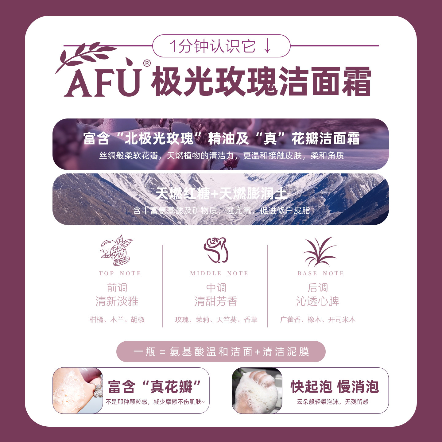 玫瑰花瓣洗脸~阿芙极光玫瑰洁面霜氨基酸洗面奶深层清洁洗卸合一