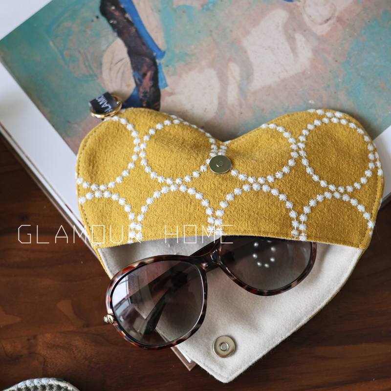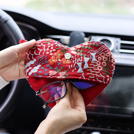 重工刺绣布艺眼镜袋挂式墨镜便携式双层防刮花太阳镜收纳包爱心形