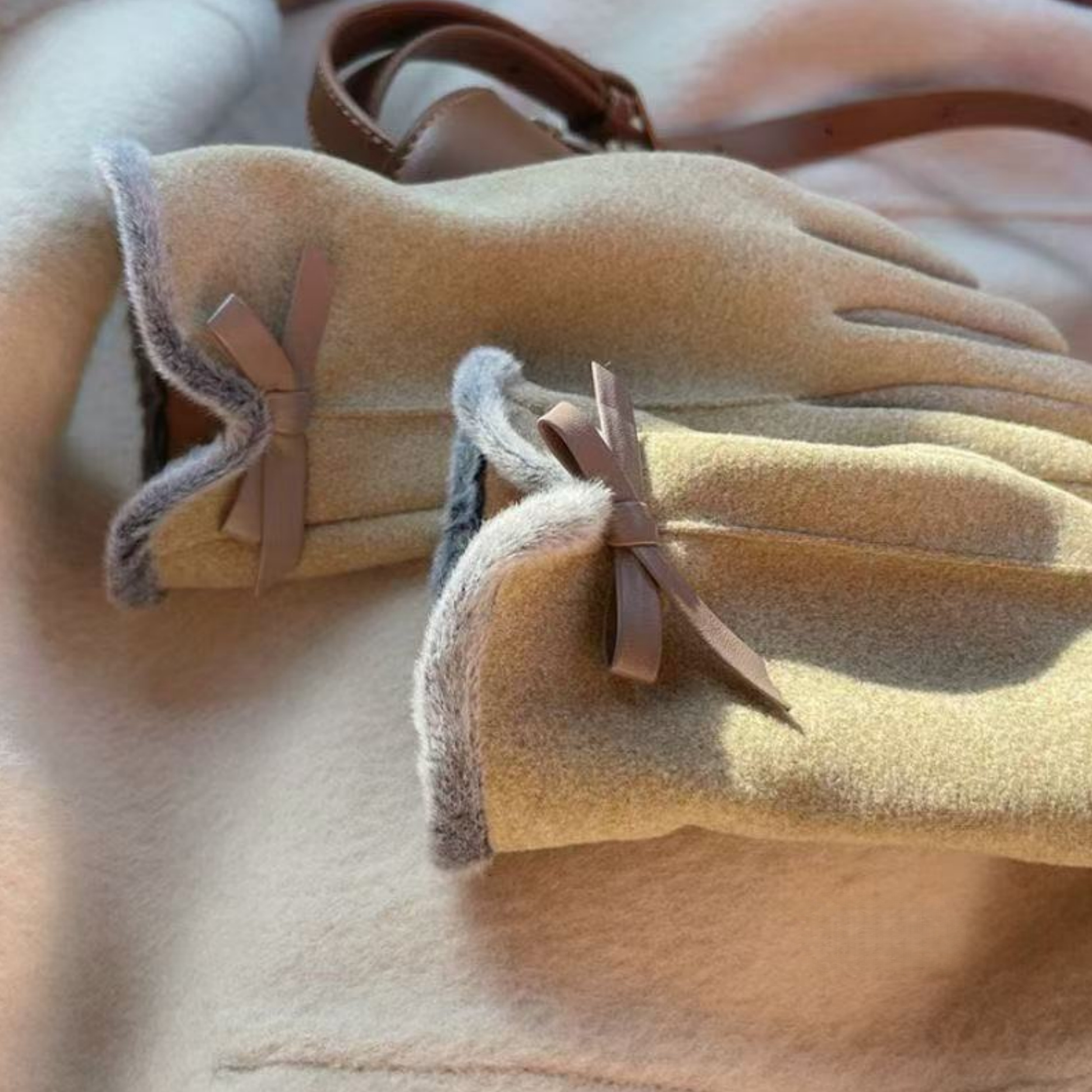 女士秋冬加绒保暖手套不倒绒毛口时尚骑行开车触屏触摸屏韩版