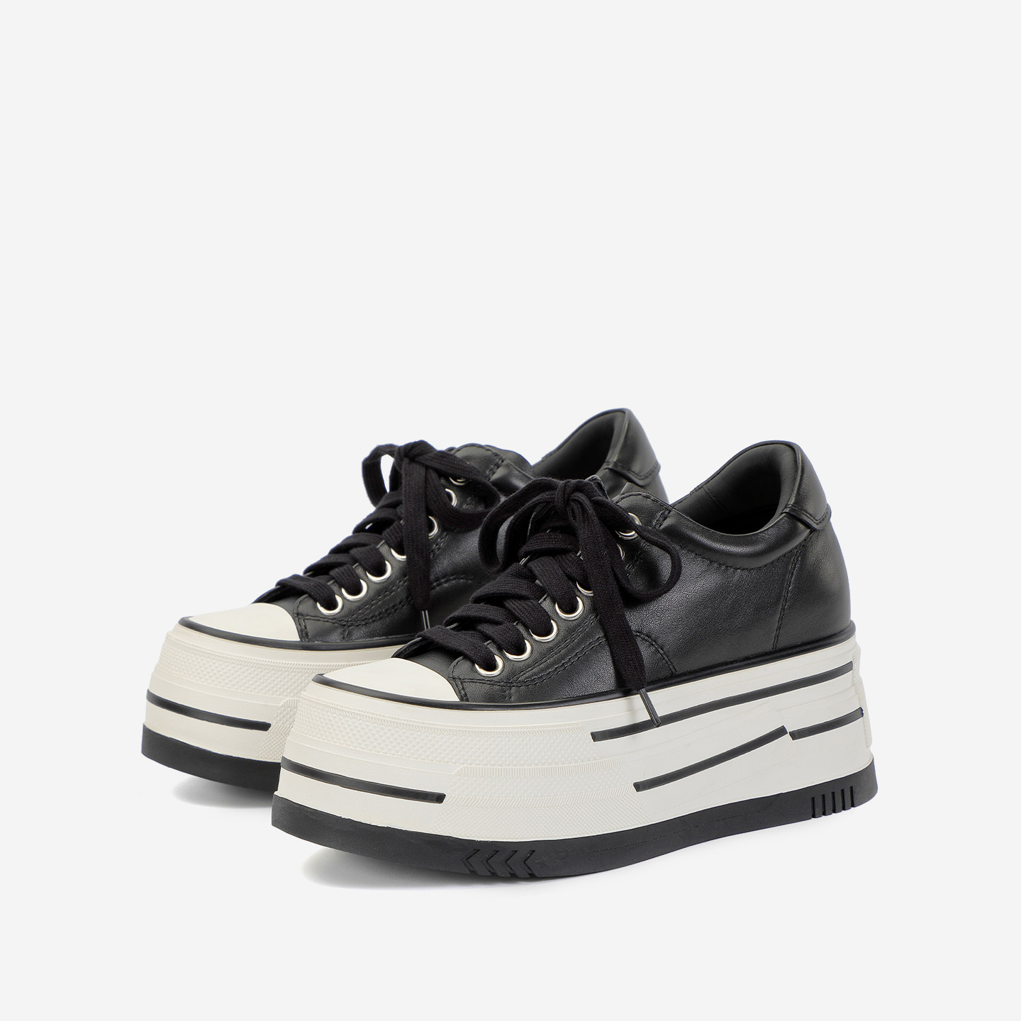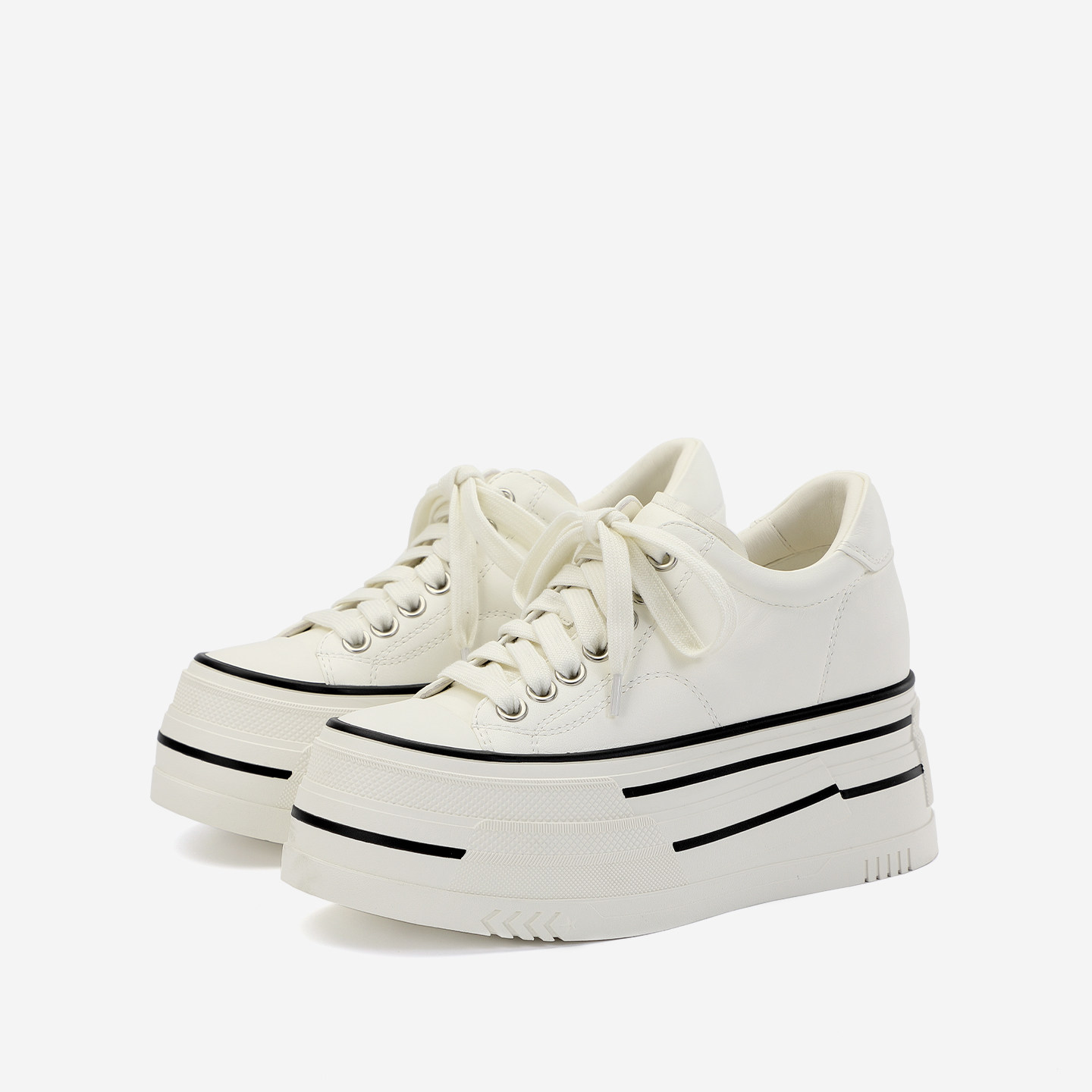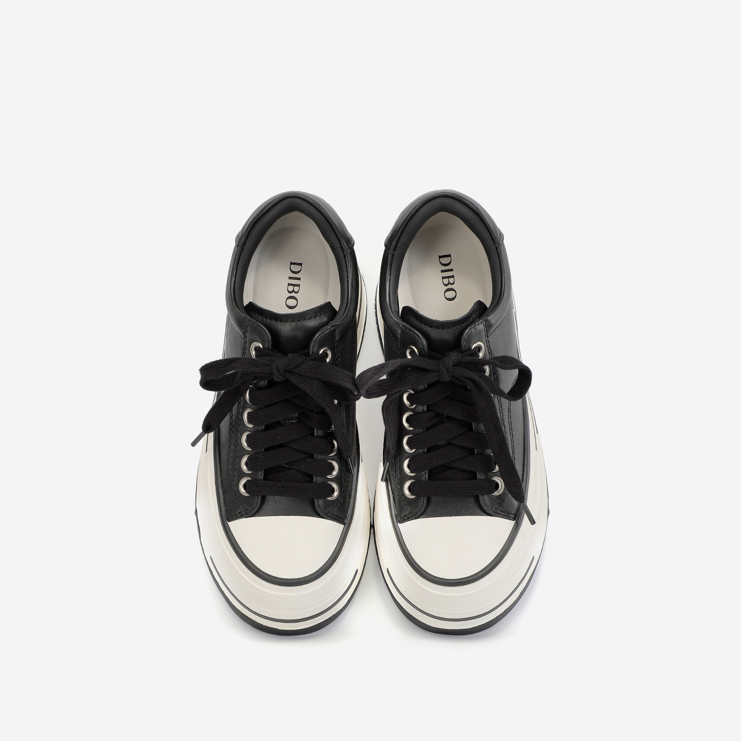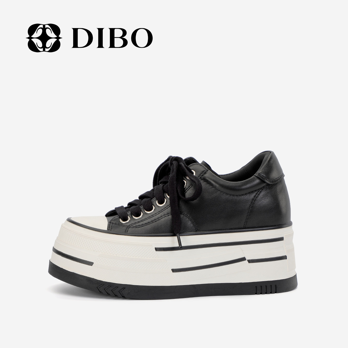 DIBO碲铂商场同款2025年秋季新款时尚厚底真皮板鞋女系带休闲鞋女