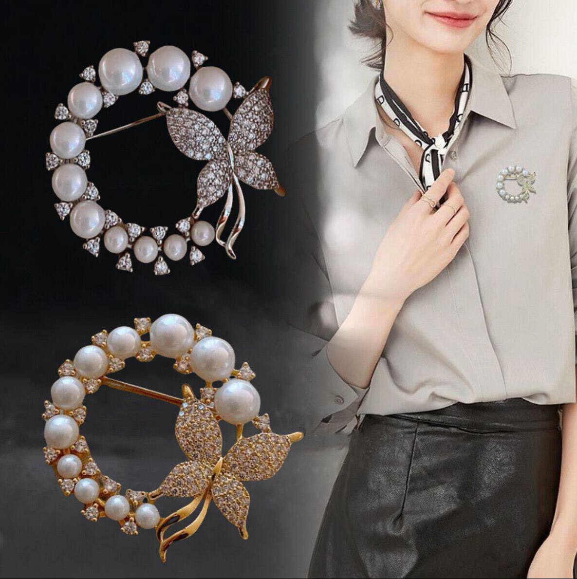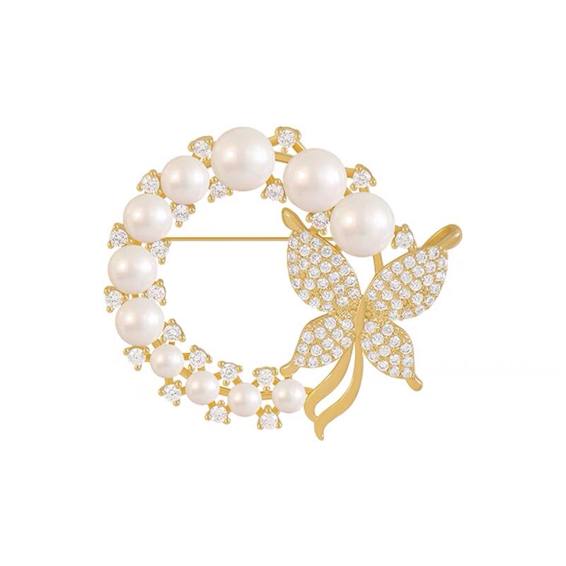 蝴蝶珍珠圆环胸针高档女防走光扣胸花别针设计感小众西服大衣配饰