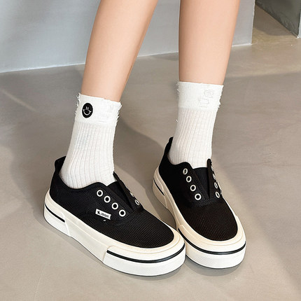 休闲厚底一脚蹬懒人网鞋小白鞋女