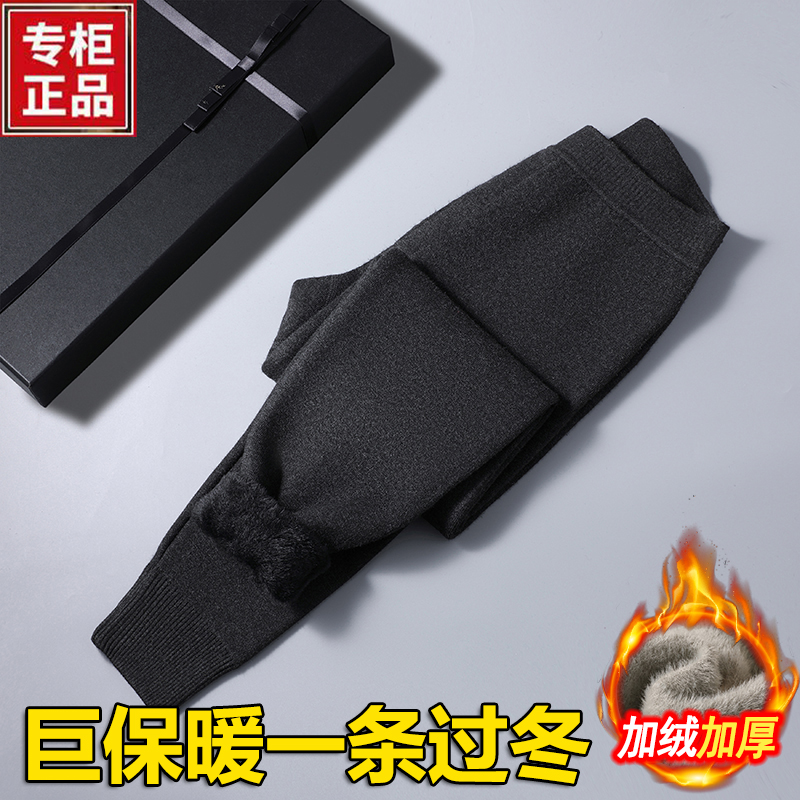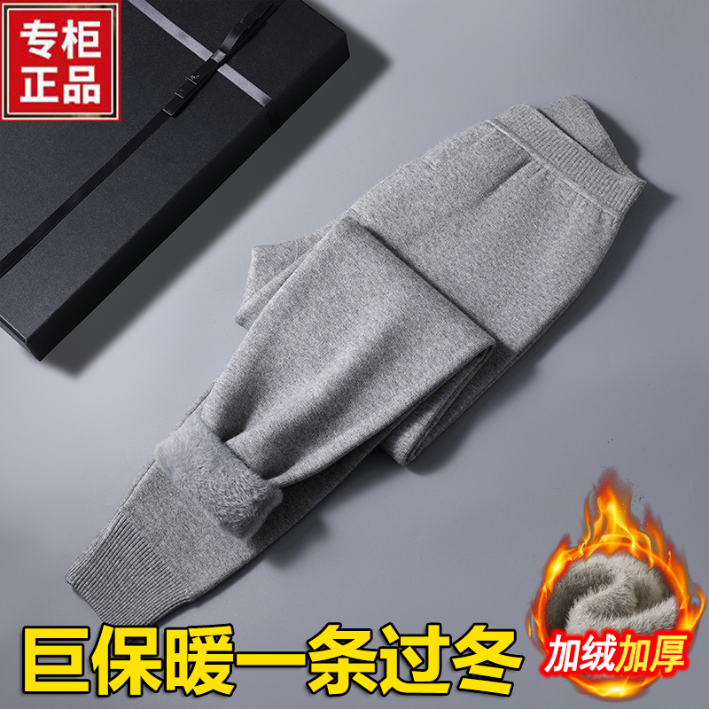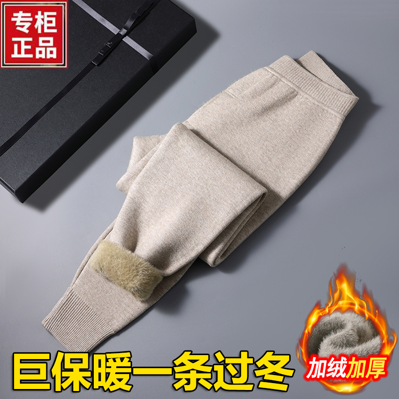鄂尔多斯市冬季加绒加厚纯羊毛裤男士高腰保暖裤中老年女款打底裤