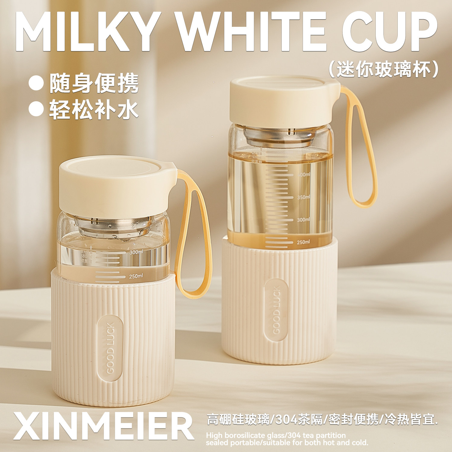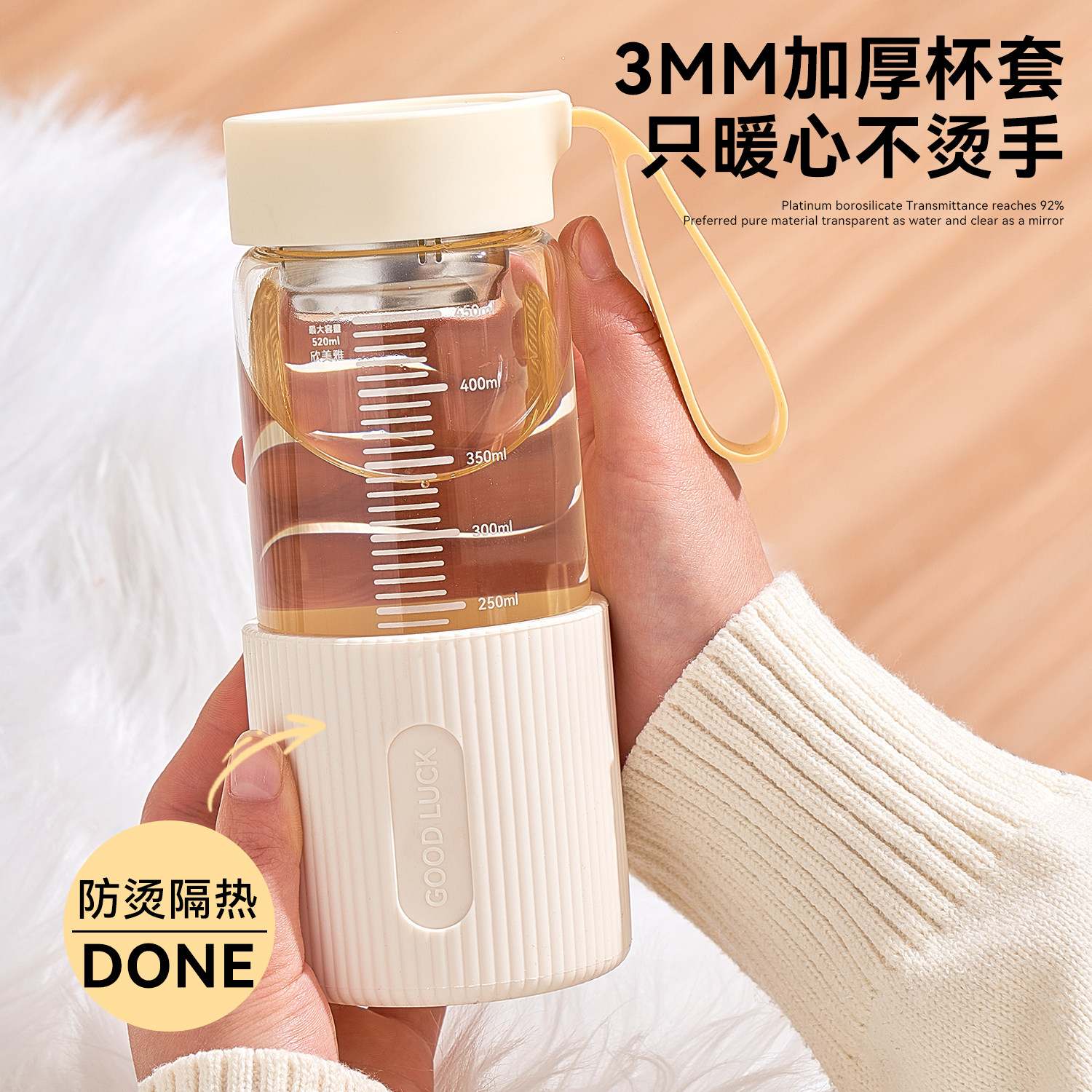 高硼硅玻璃杯女高颜值茶水分离杯子2025新款泡茶杯刻度杯早餐杯