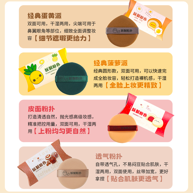 妖制粉扑蛋黄派菠萝派粉底液专用干湿两用植绒粉饼皮面透气一周女