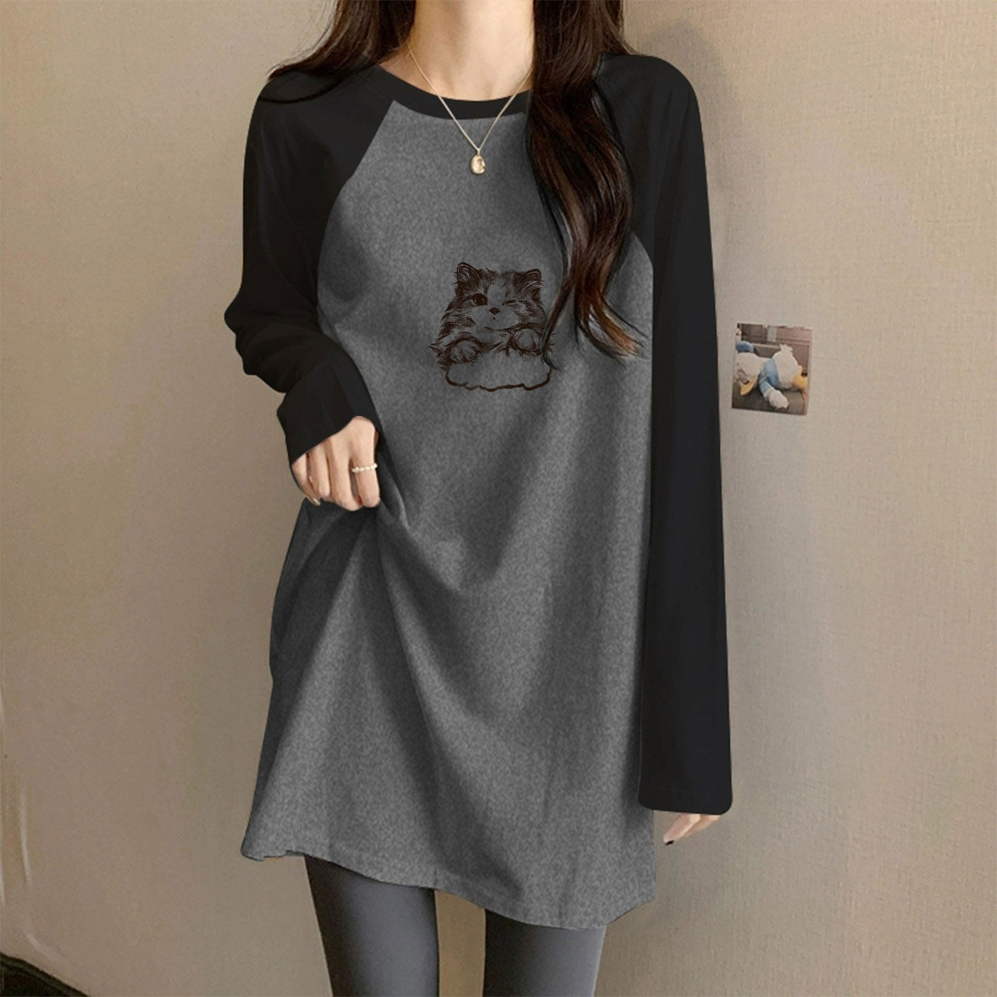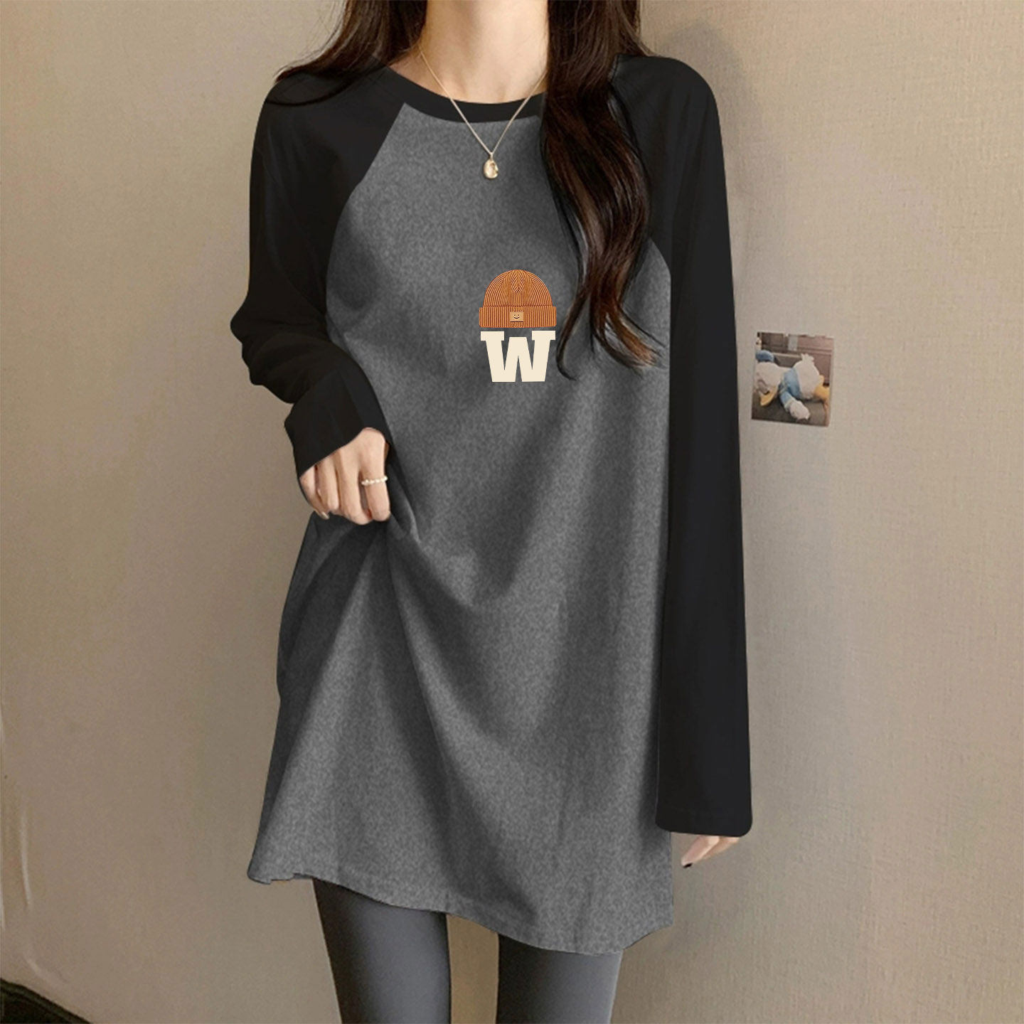 秋冬加绒内搭打底衫女中长款遮屁股独特漂亮洋气纯棉长袖t恤上衣