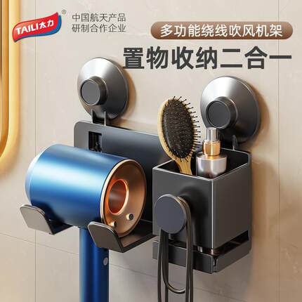 太力不锈钢免打孔吹风机置物架壁挂式浴室电吹风收纳架挂墙风筒架