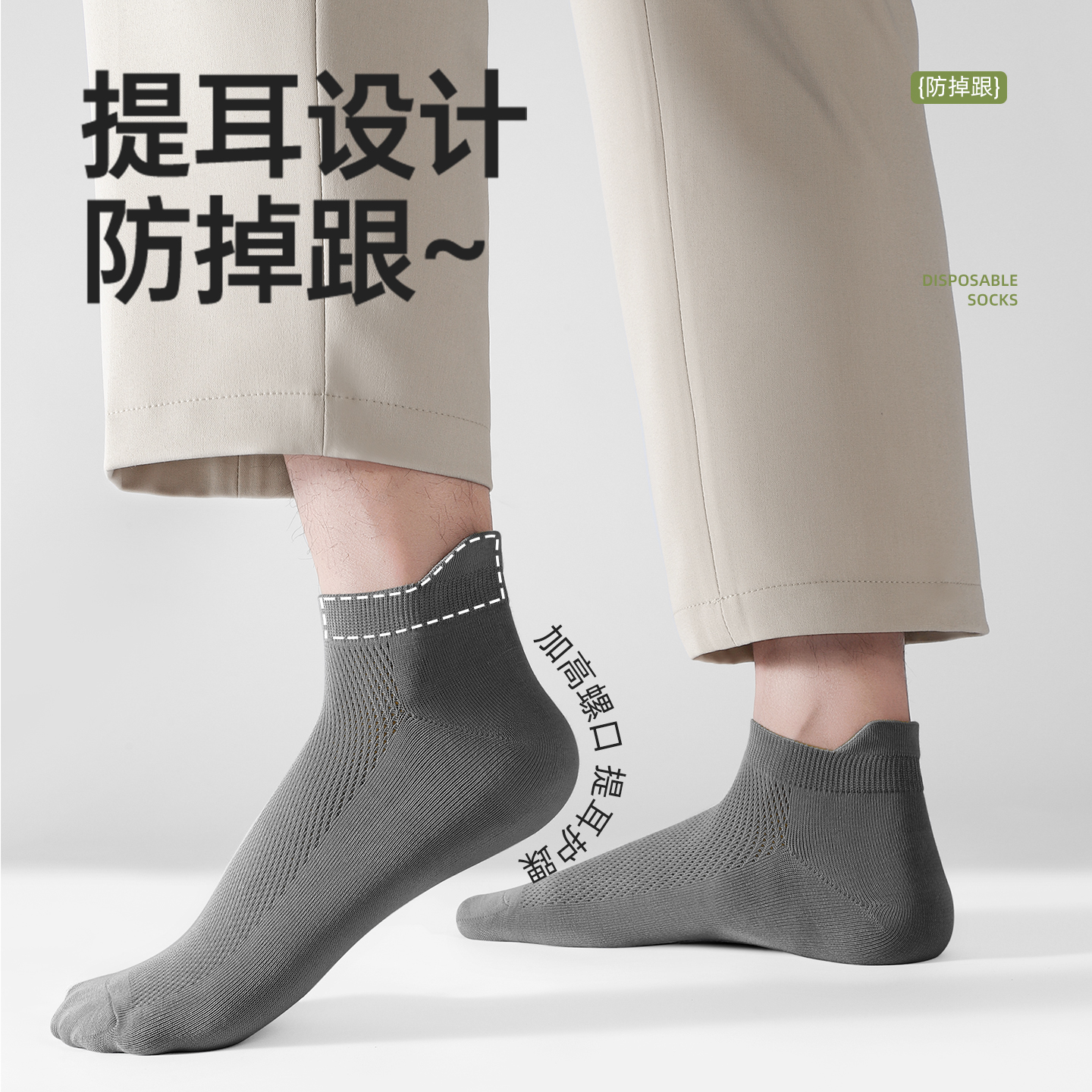 一次性袜子男款提耳纯棉透气防臭日抛免洗短款船袜男士旅行便携袜
