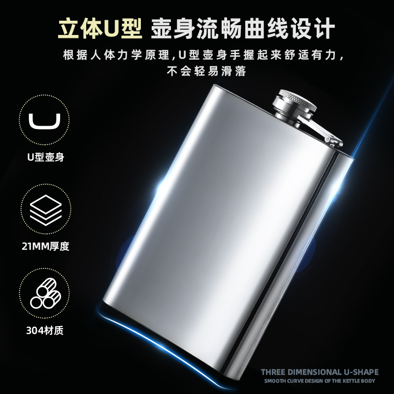 俄罗斯小酒壶304不锈钢随身便携式户外1一2半5斤装白酒扁酒瓶迷你