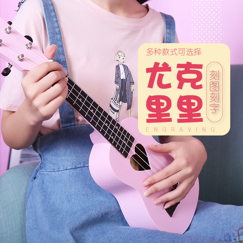 尤克里里女初学者高颜值女生款可爱儿童乌克丽丽入门小吉他刻字