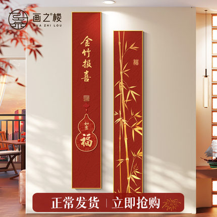 金竹玄关装饰画中国风葫芦竖长条组合壁画新中式竹子入户正墙挂画