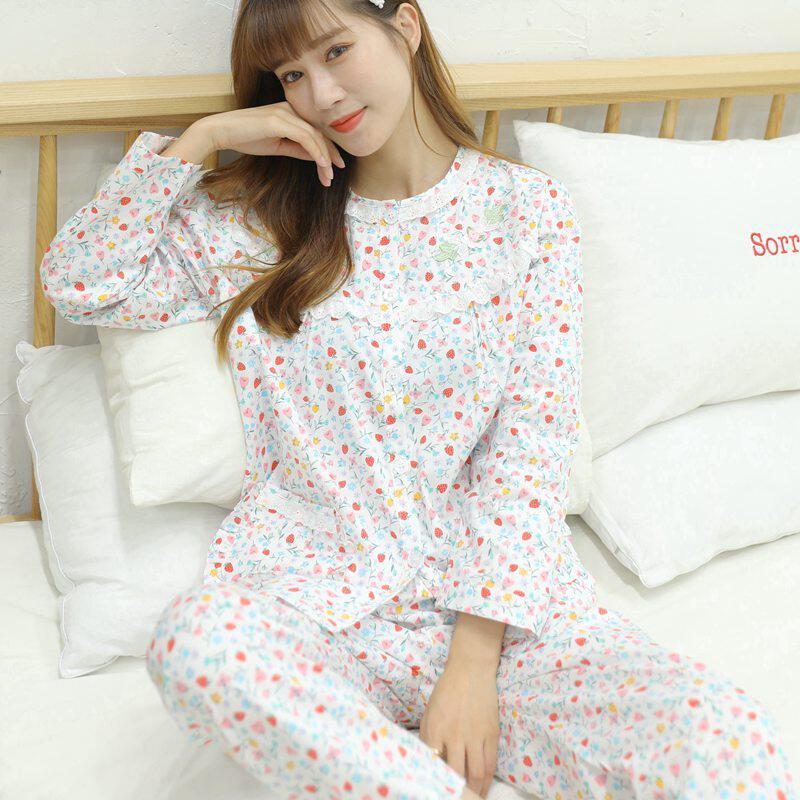 2025新款纯棉睡衣女春夏棉布家居服甜美梭织棉开衫长袖薄款春套装