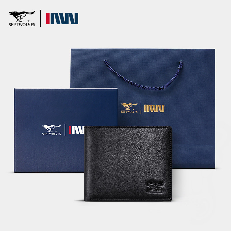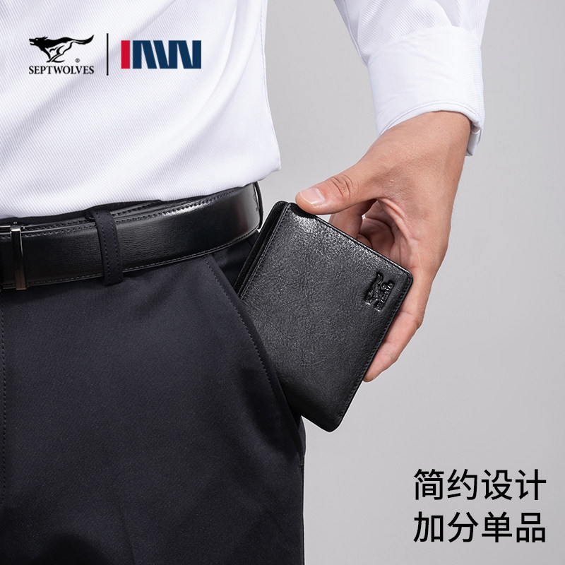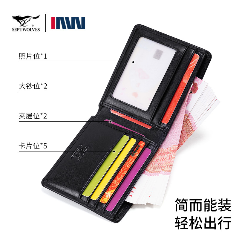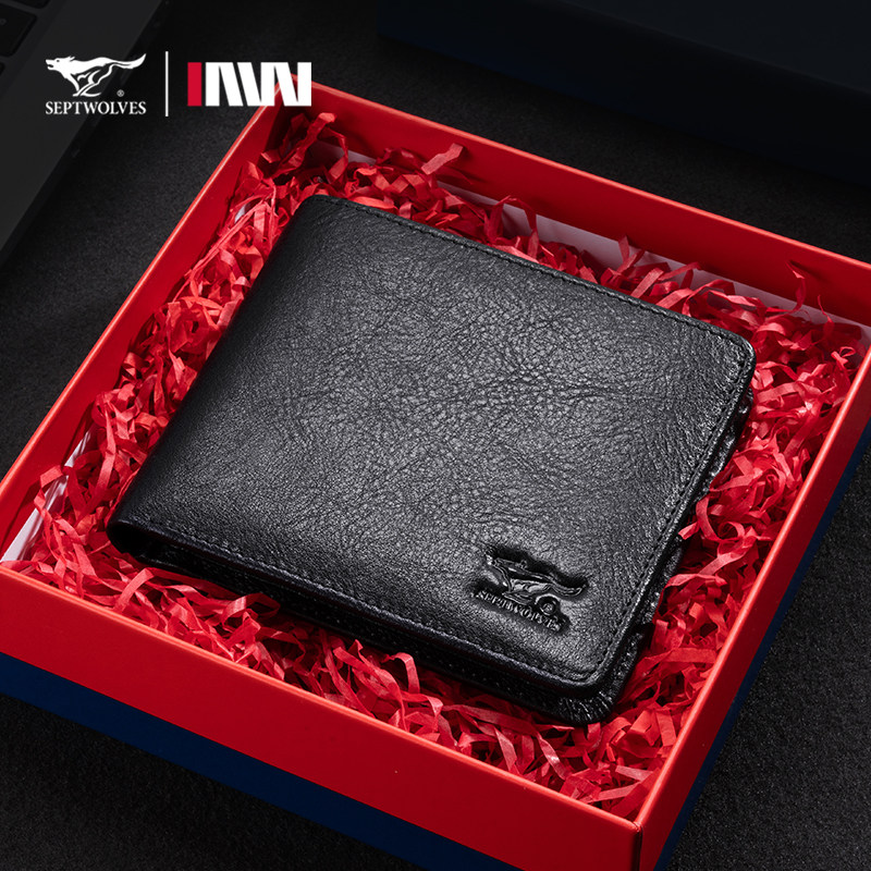 七匹狼钱包男士真皮短款卡包皮夹2026新款薄款送爸爸生日礼物钱夹