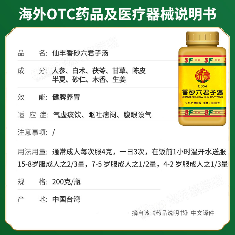 中国台湾仙丰E054香砂六君子汤200g健脾养胃气虚痰饮眍吐痞闷腹