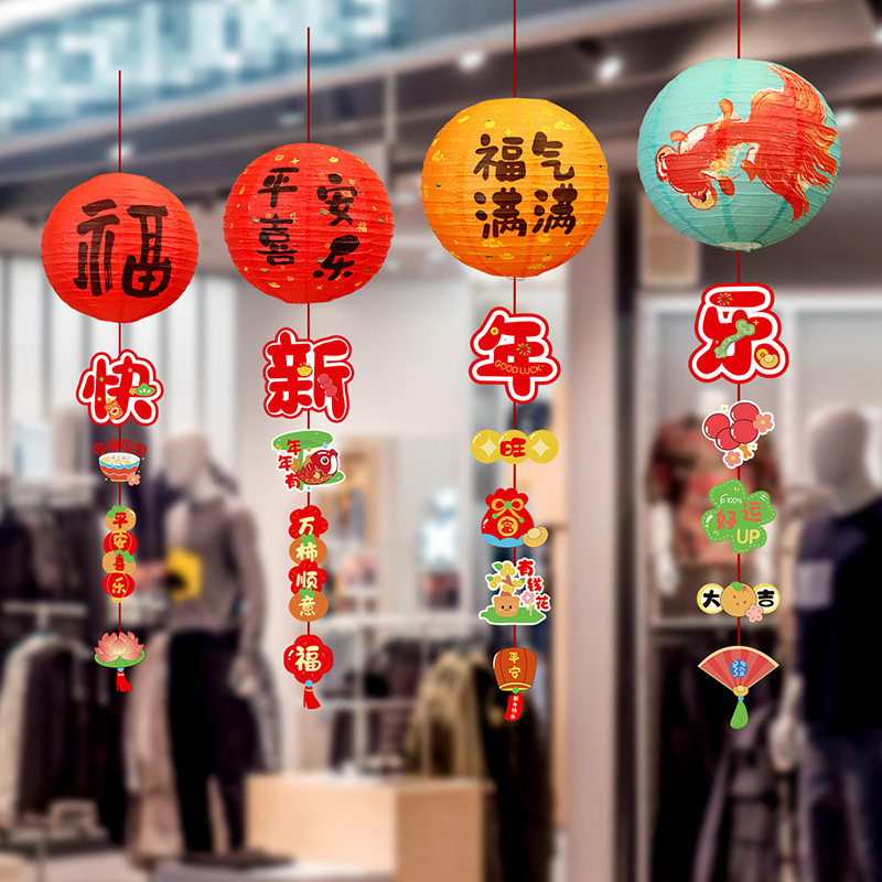 2026元旦马年新年装饰福字红灯笼串挂饰发光宫灯春节过年场景布置
