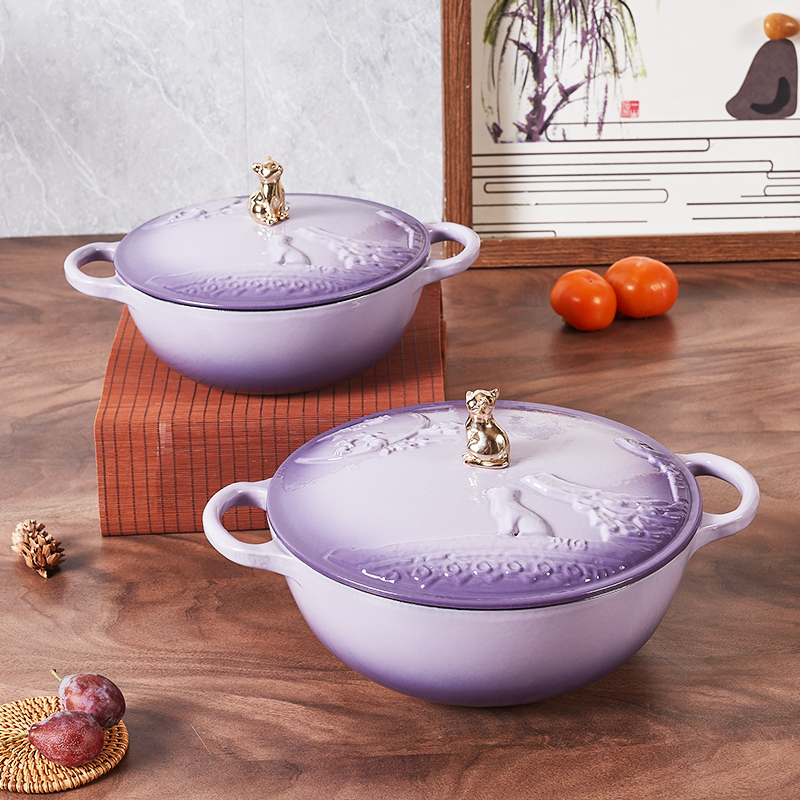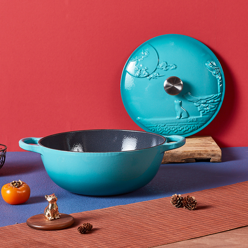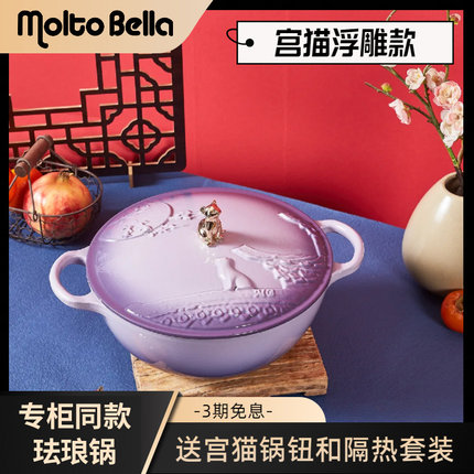 moltobella贝拉珐琅锅宫猫望月铸铁炖锅国风汤煲砂锅炒锅无涂层