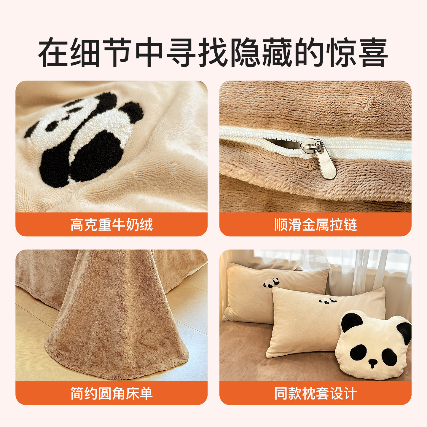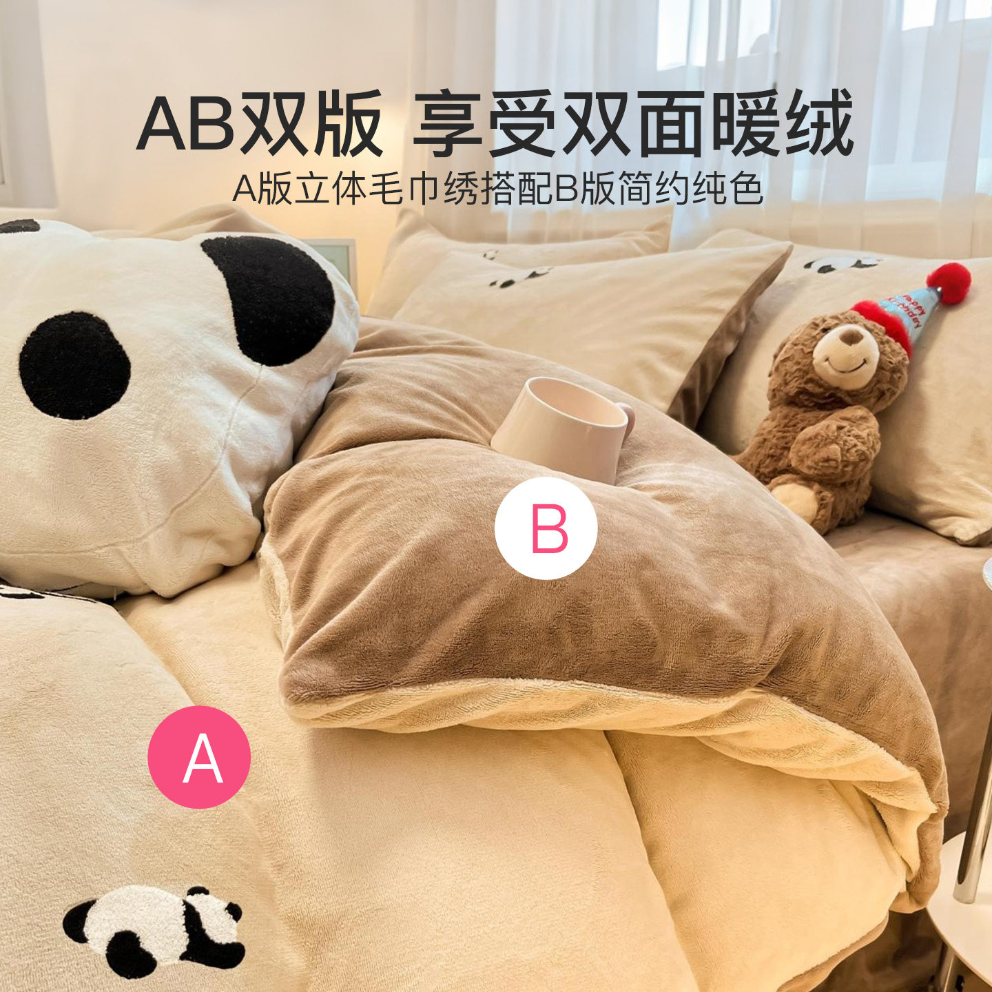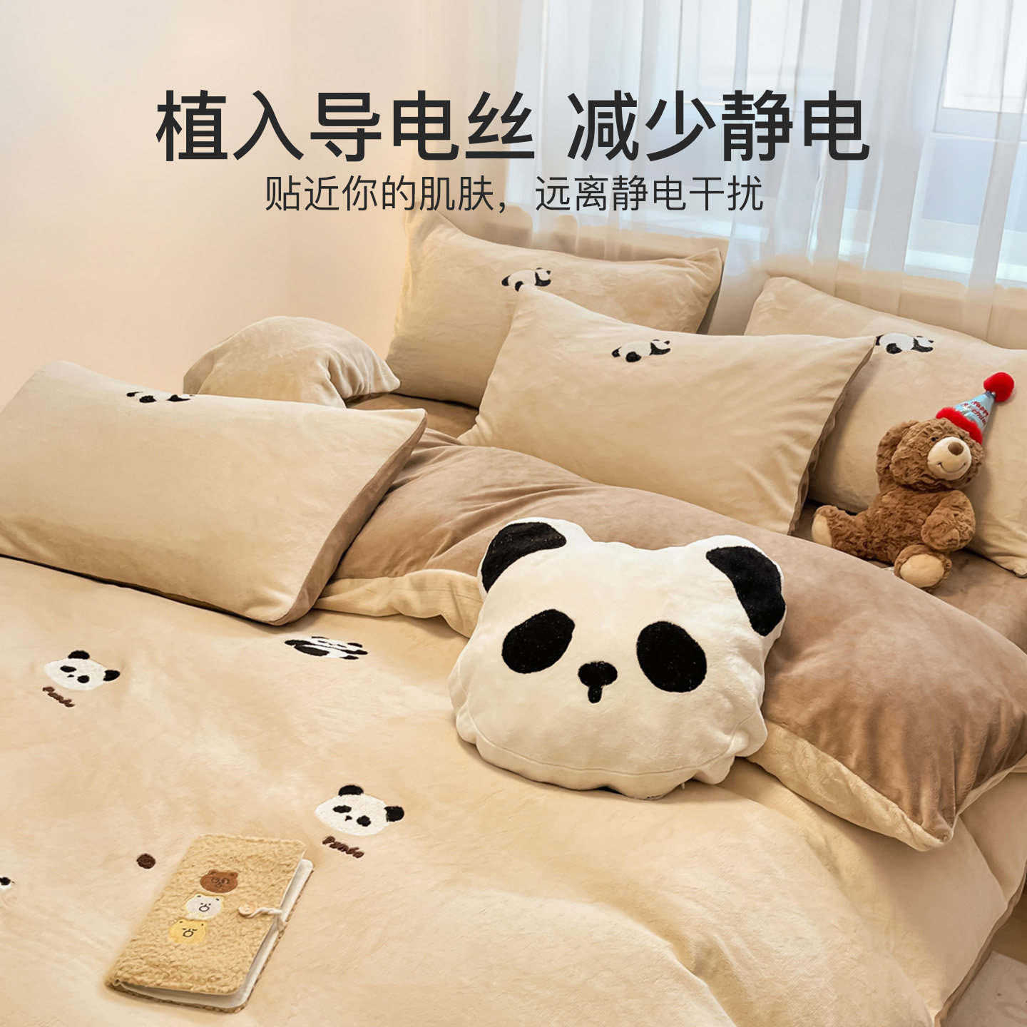 洁丽雅冬季牛奶绒四件套法兰绒毛绒被套床单加绒珊瑚绒床上三件套