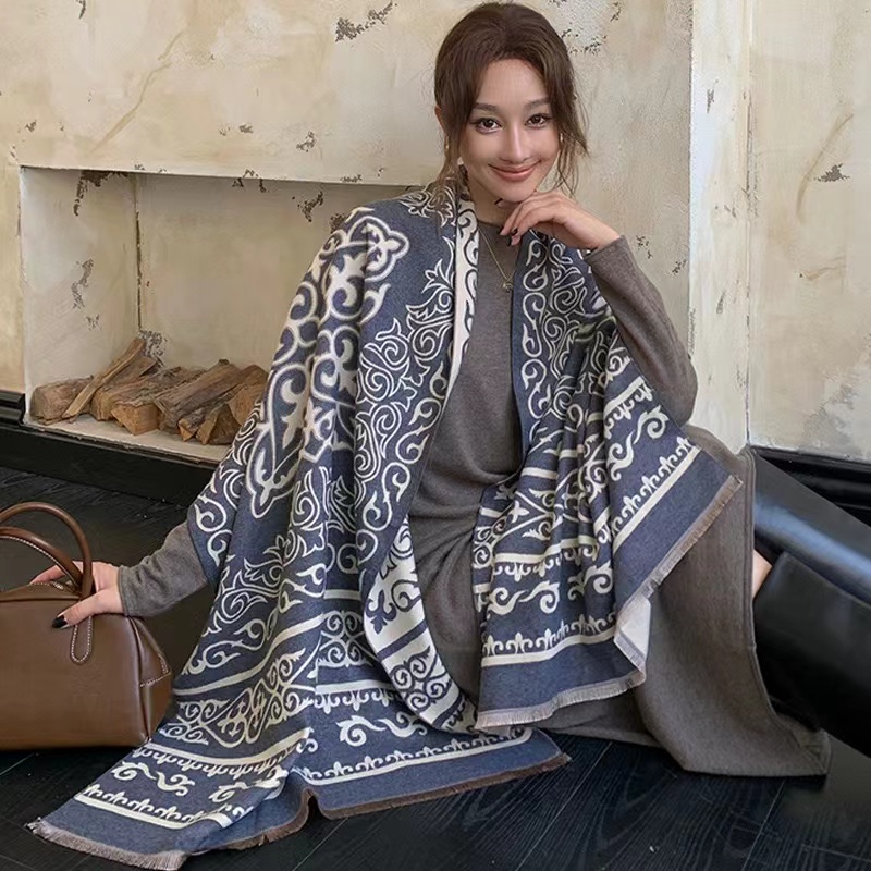 长款仿羊绒披肩民族风女士围巾双面加厚保暖秋冬季新款大披肩围脖