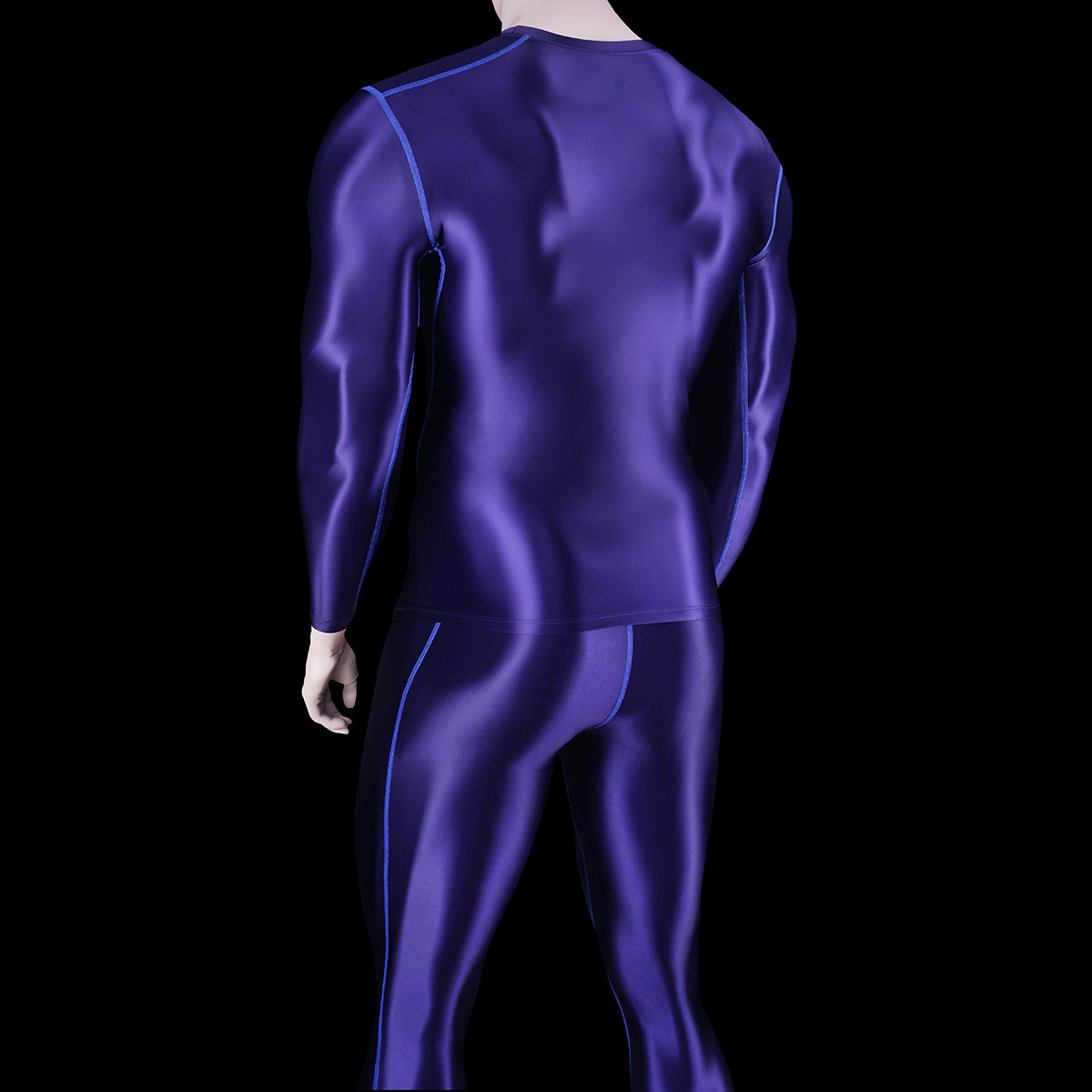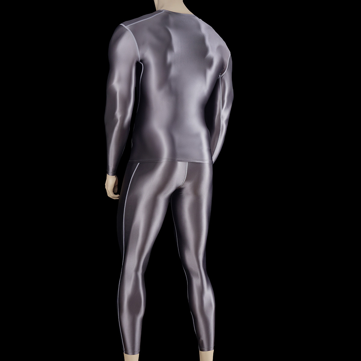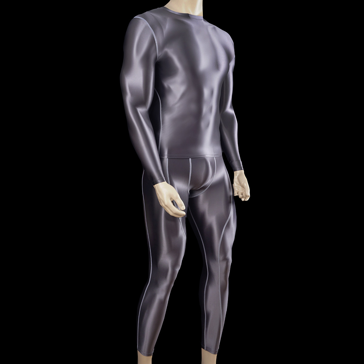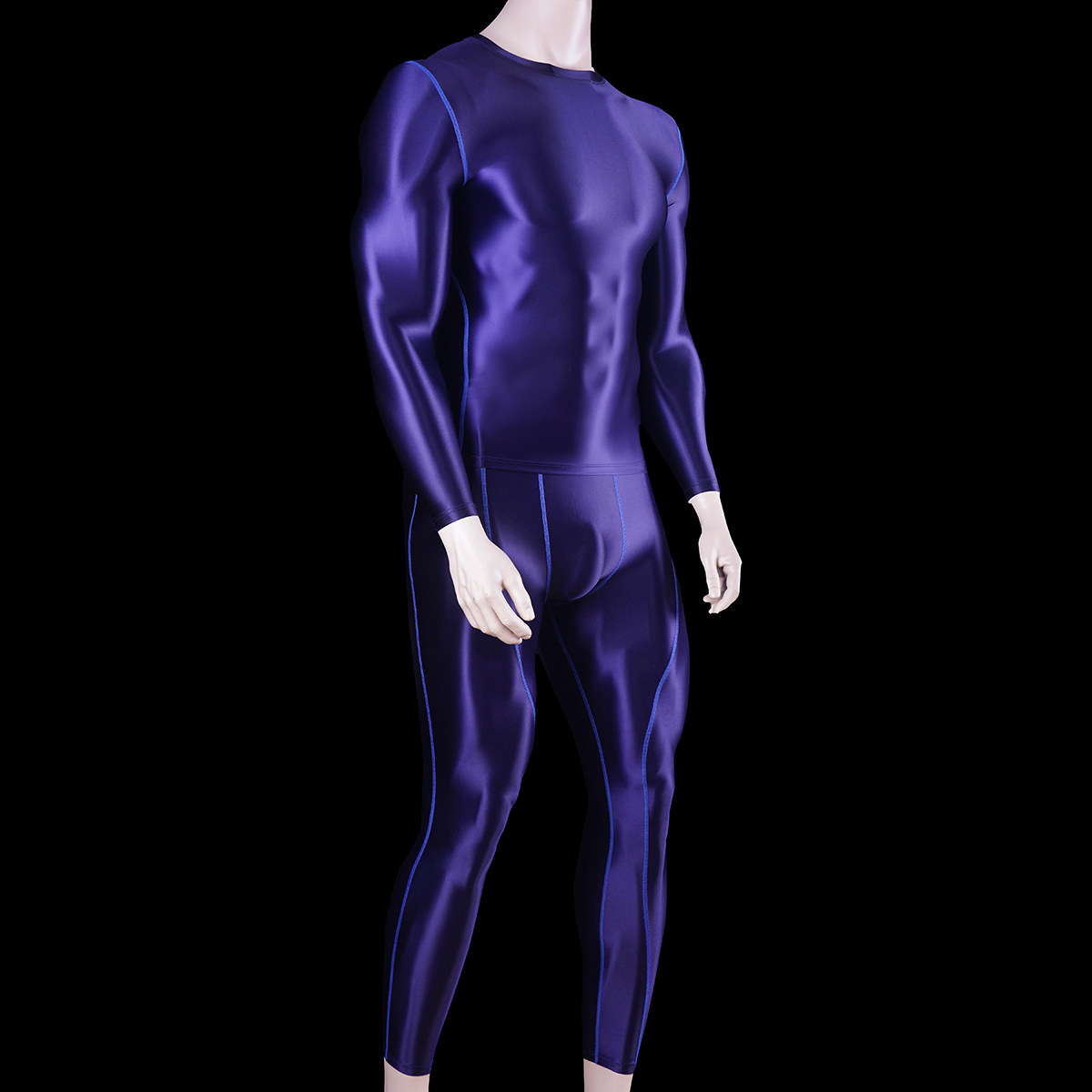 油亮性感男士紧身衣光泽丝滑长袖T恤长裤瑜伽训练运动跑步打底裤