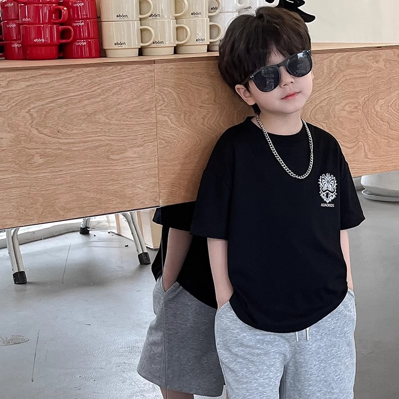 儿童短袖T恤红色中国风印花男童夏季2025新款宽松纯棉圆领款童装