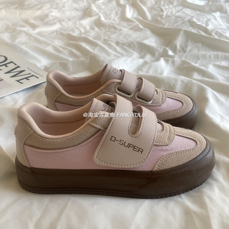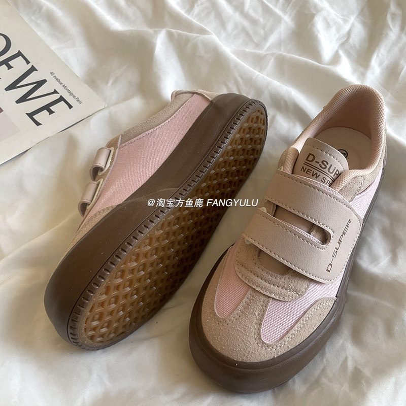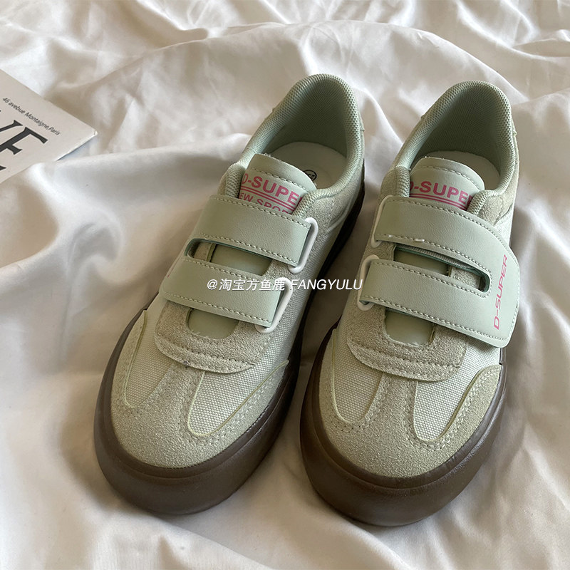 方鱼鹿 魔术贴厚底板鞋女2024新款春夏百搭设计感小众休闲帆布鞋
