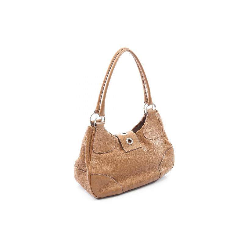 中古Prada普拉达女包B级9新Shoulder bag肩包牛皮托特包棕色