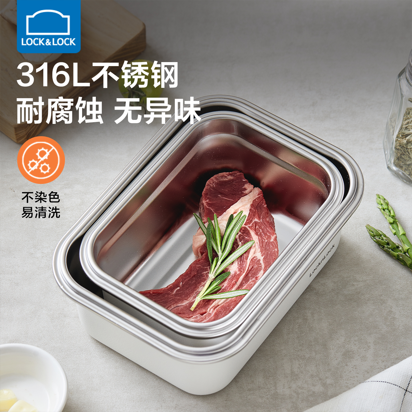 乐扣乐扣保鲜盒食品收纳盒带盖不锈钢饭盒水果便当盒冰箱密封盒