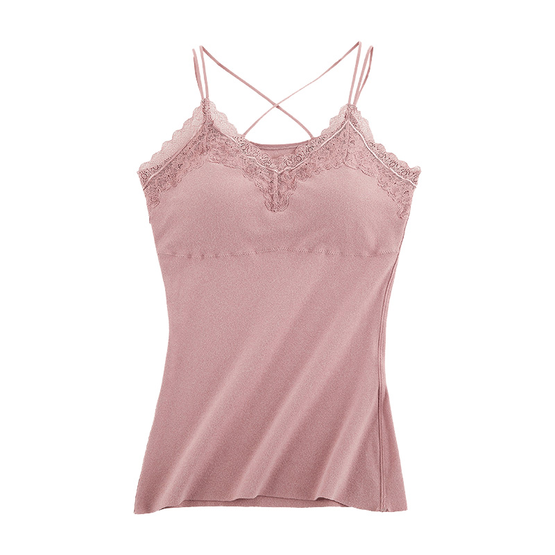 保暖背心女带胸垫加绒加厚冬季德绒痕自发热内衣蕾丝吊带打底衫