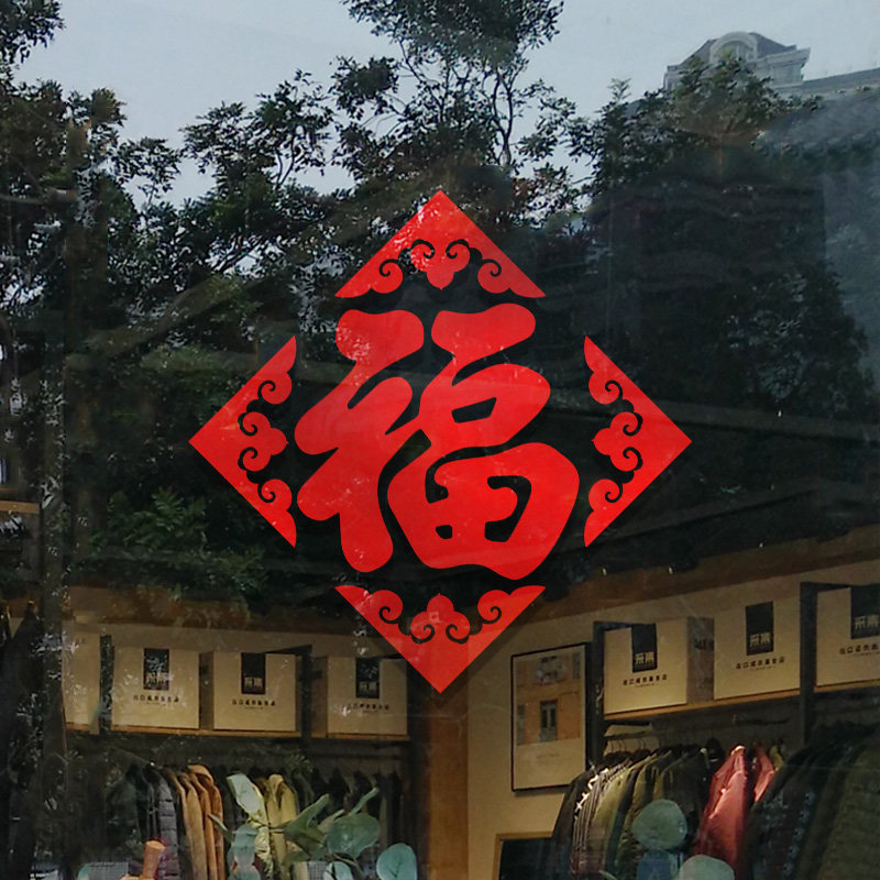 春节福字贴纸玻璃喜庆橱窗花装饰店铺新年贴画商场窗户喜庆布置