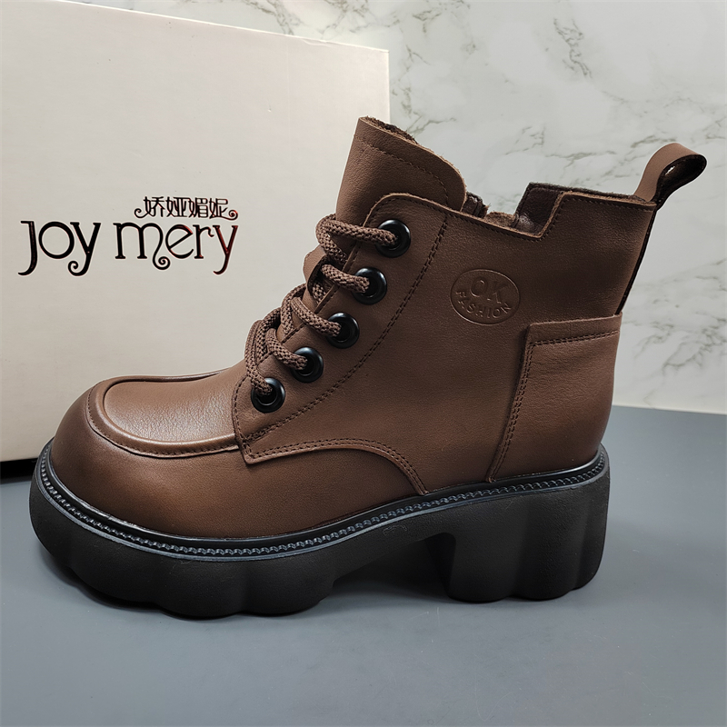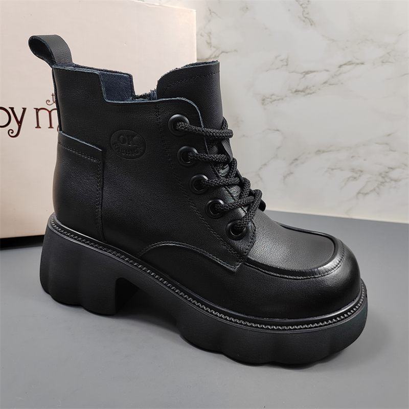 品牌女鞋头层牛皮厚底马丁靴女2025秋冬新款英伦风复古单靴短靴潮