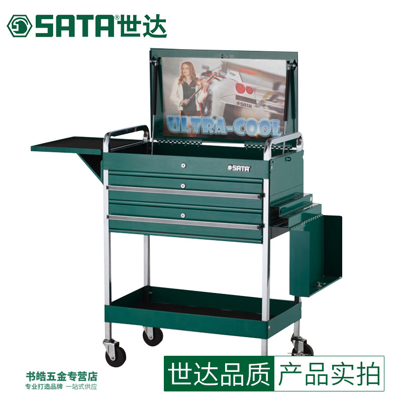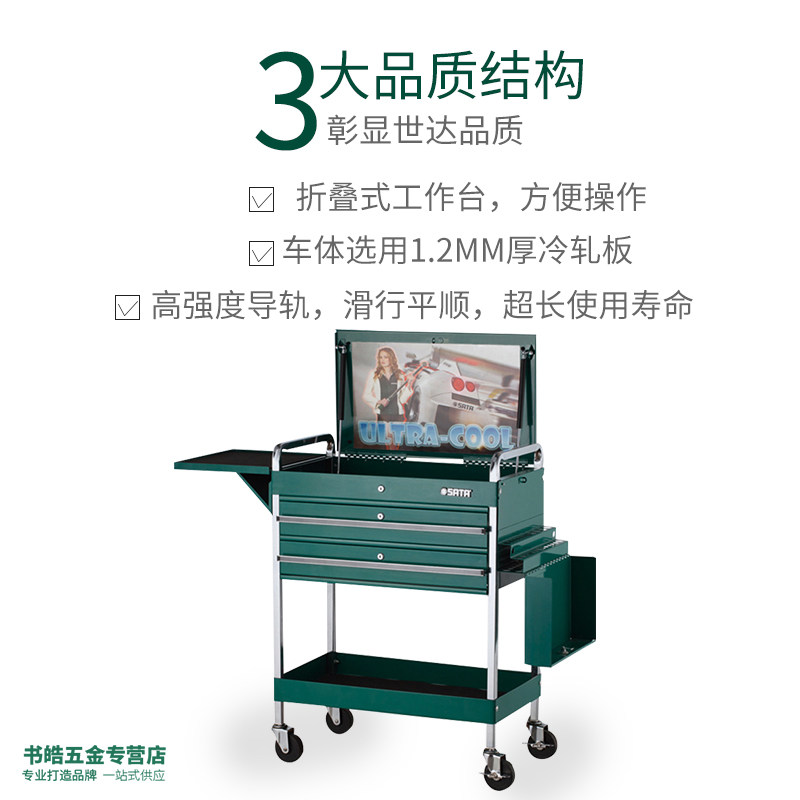 世达五金双抽屉三层多功能周转车维修工具车手推移动零件车 95118