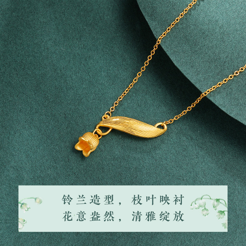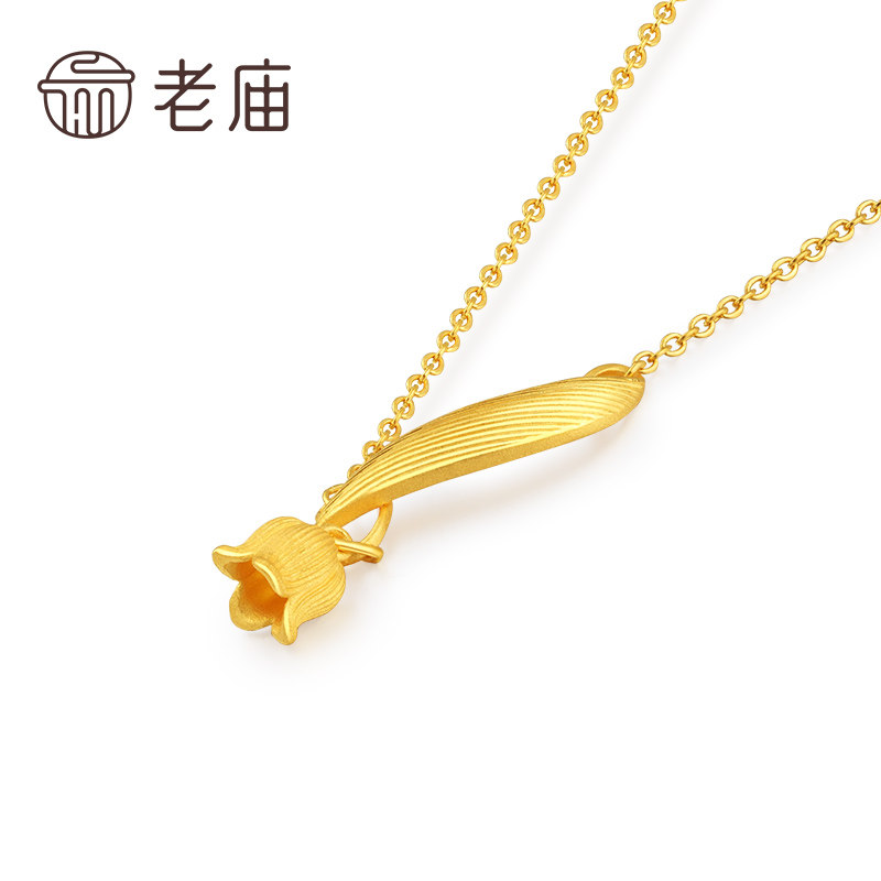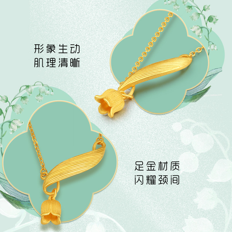 老庙黄金足金999铃兰花花朵项链时尚三金婚嫁吊坠官方旗舰店正品