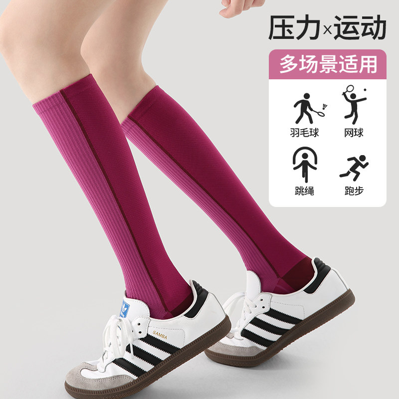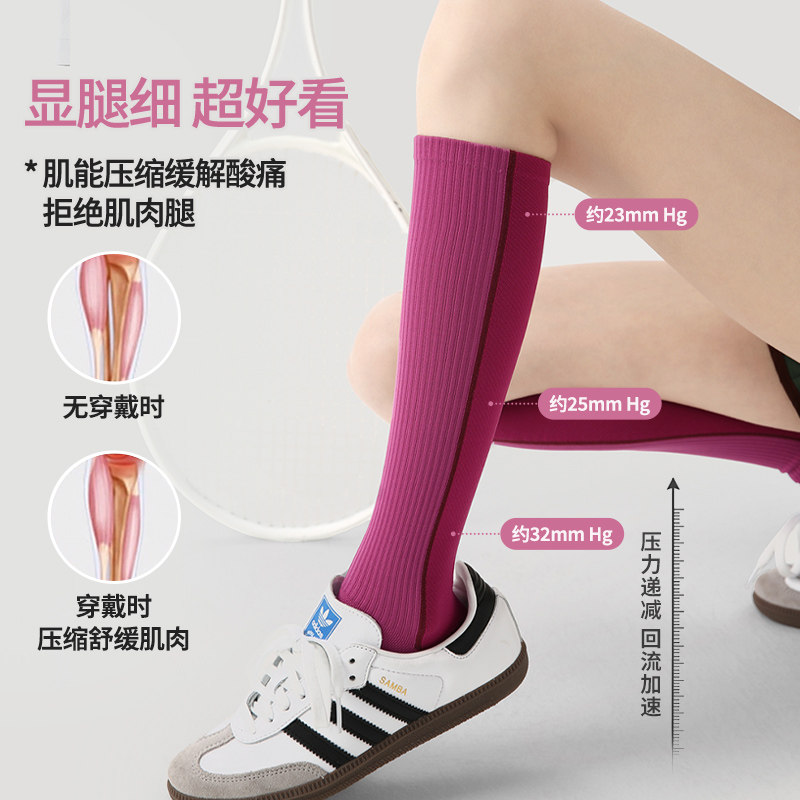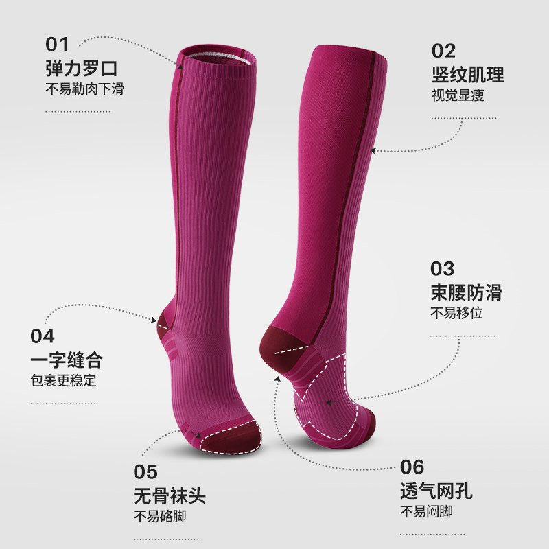 专业跑步运动袜女登山徒步骑行跳绳瑜伽瘦腿小腿压力袜加压长筒袜