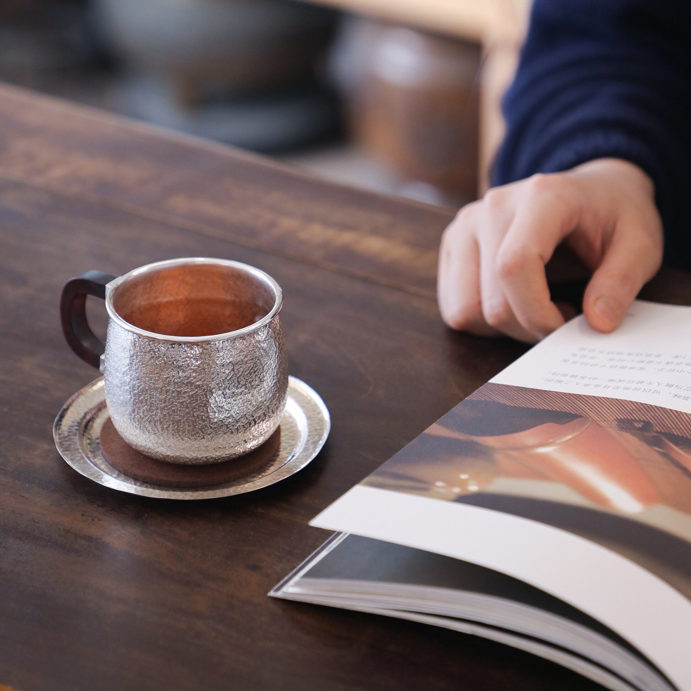 纯银时代锤纹足银小马克杯