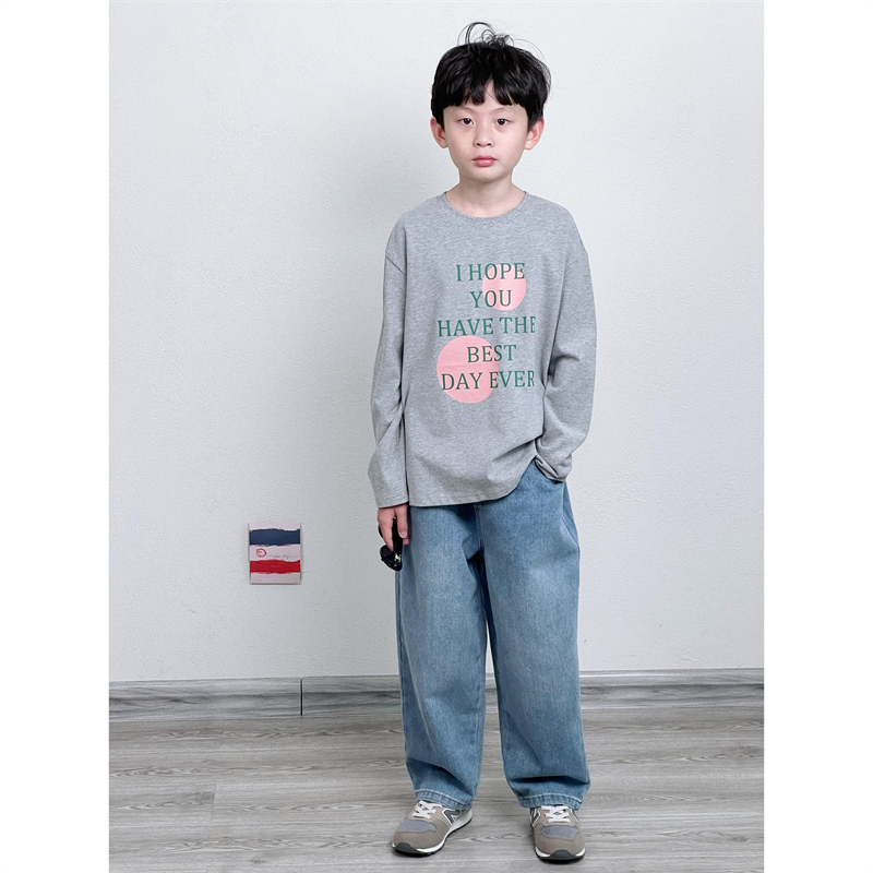 童童妈定制男女童韩版宽松纯棉灰色绿色印花简约百搭长袖T恤秋装