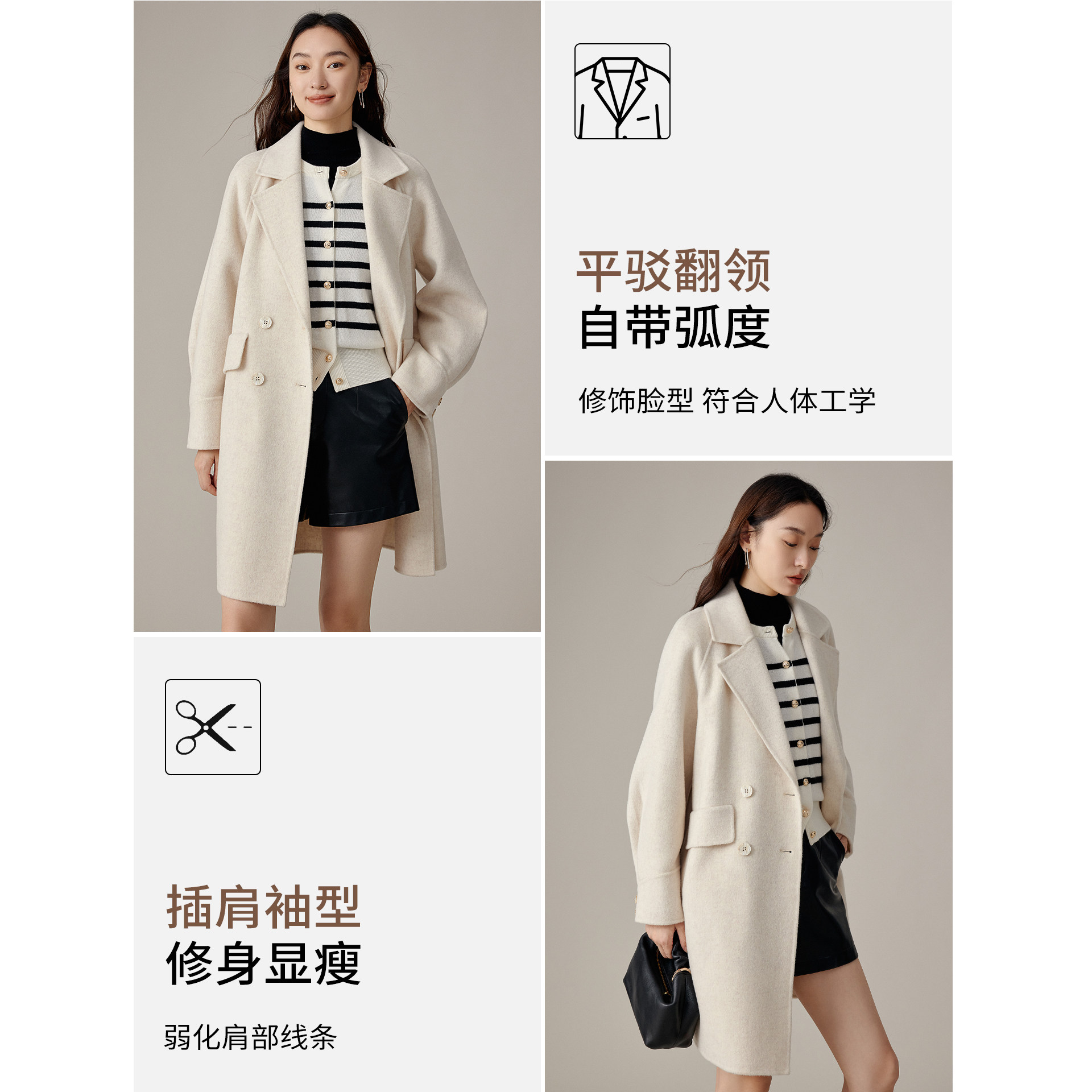 【全羊毛】双面呢子大衣女中长款2025年冬季新款赫本风米白色外套