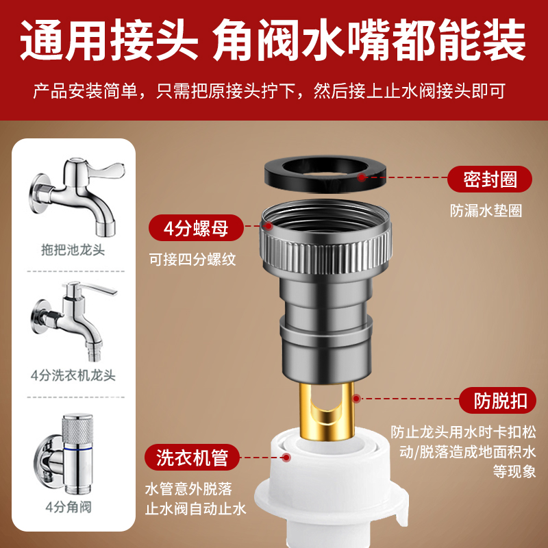 全铜洗衣机水龙头进水管转接头专用自动止水阀防脱落水嘴配件大全