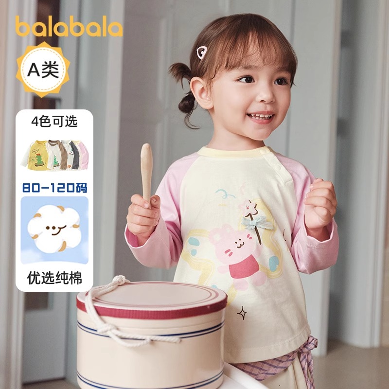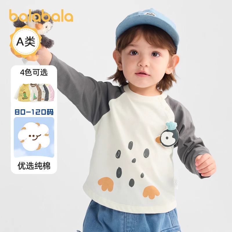 巴拉巴拉童装宝宝t恤纯棉打底衫男童女童长袖上衣2025新款秋装萌
