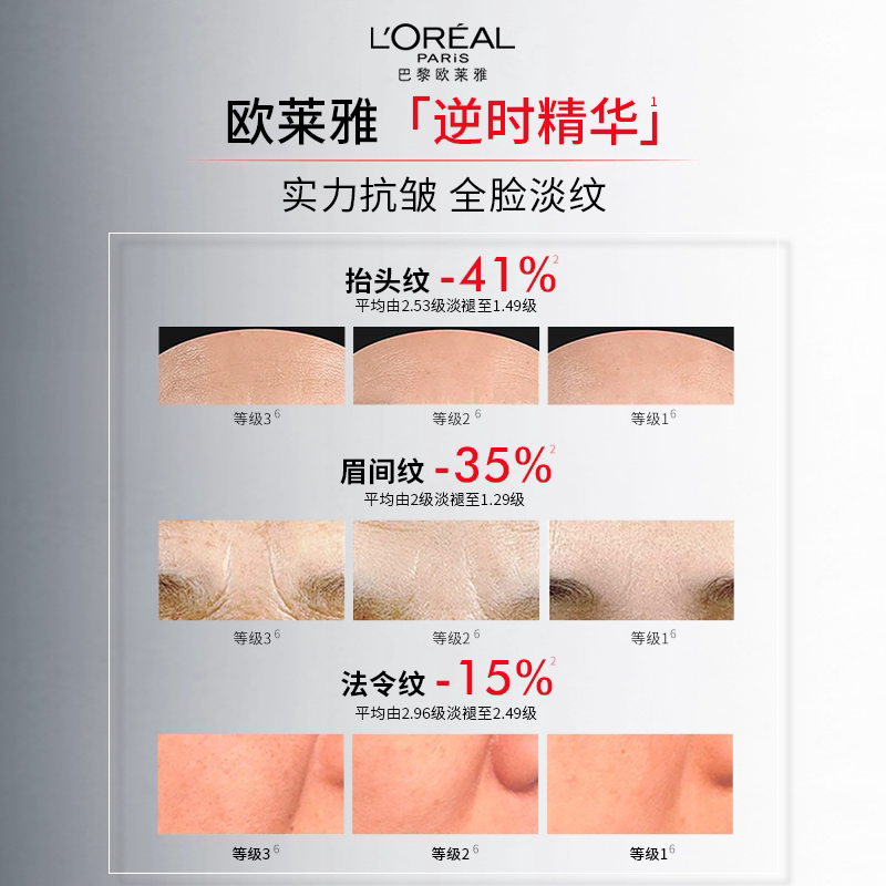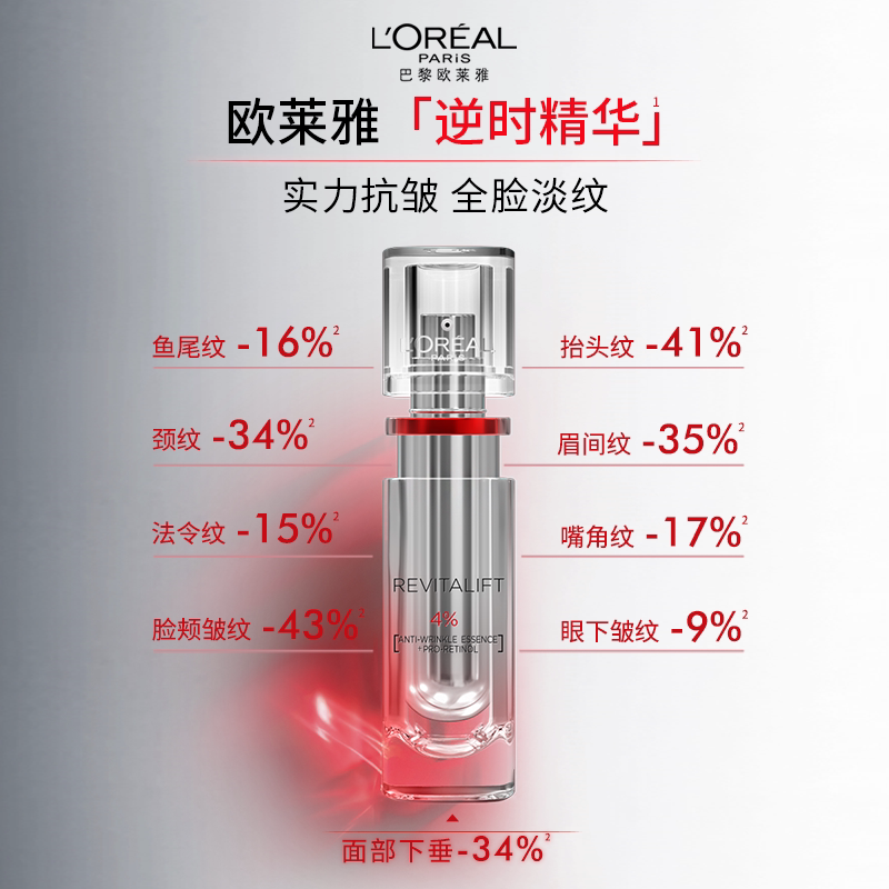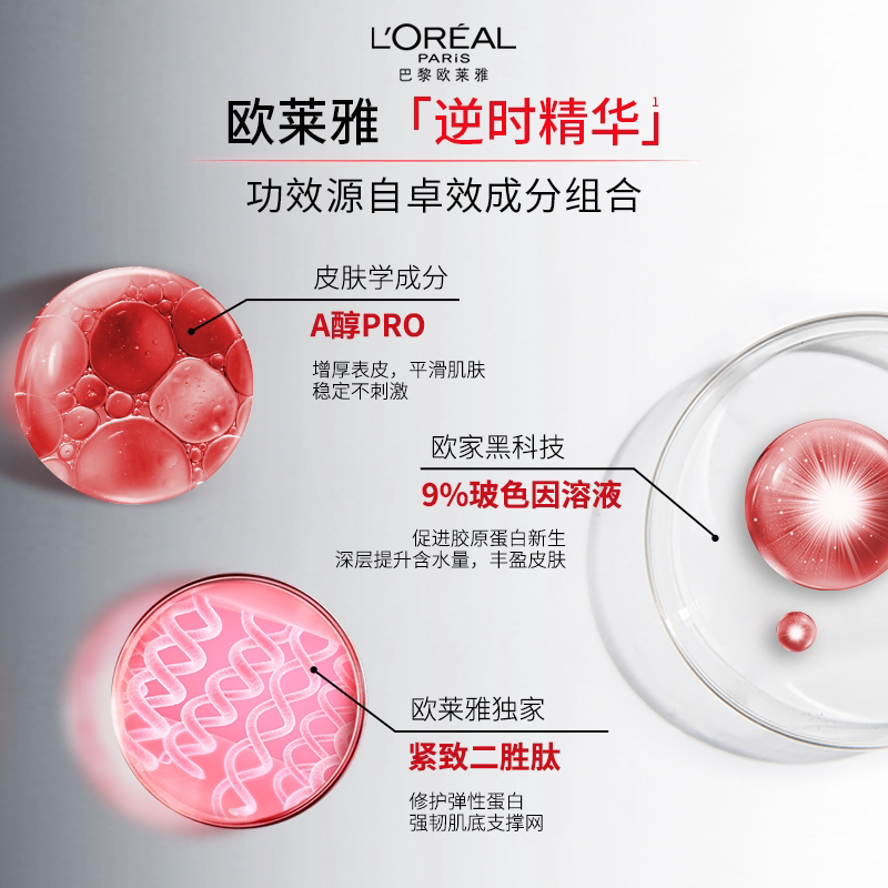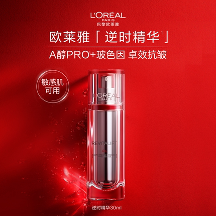 欧莱雅逆时精华A醇精华液抗皱紧致抗老补水保湿淡化细纹护肤品B
