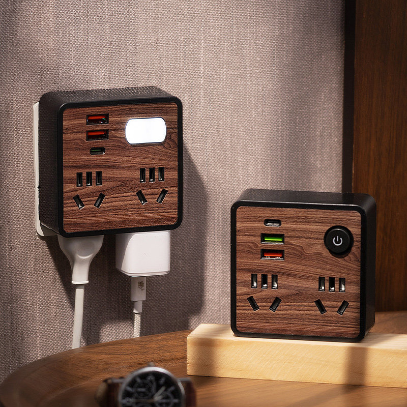 公正午纯铜插座86木纹无线转换器带USB夜灯插板多功能接线板排插