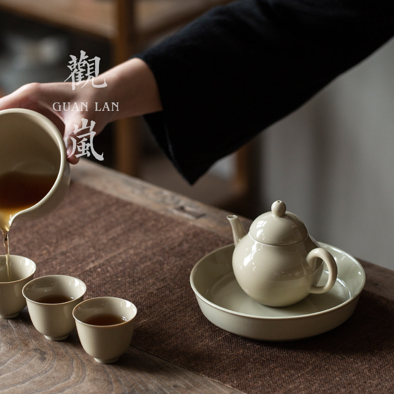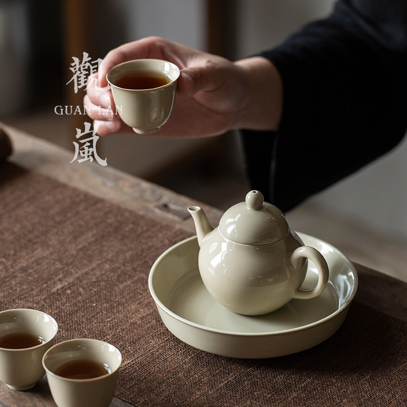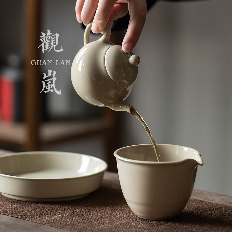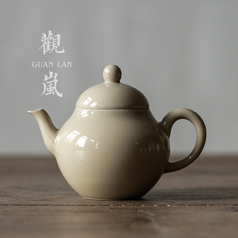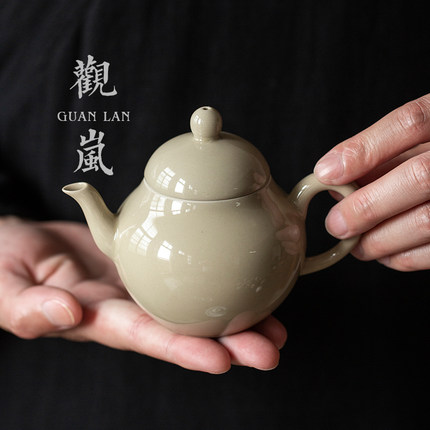 观岚草木灰茶壶手工功夫茶具单壶陶瓷小茶壶家用复古泡茶壶小梨壶