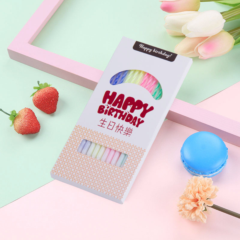 水晶螺纹四色生日蛋糕无烟蜡烛创意儿童浪漫聚会氛围生日蜡烛带拖