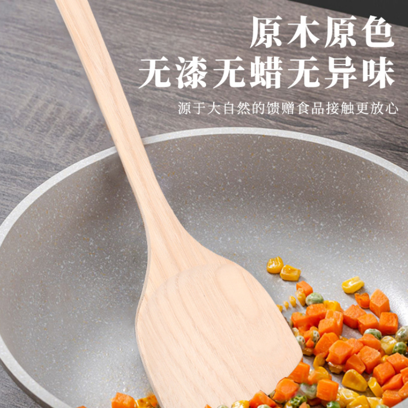 日式不粘锅木铲长柄木制炒菜锅铲原木斜头锅铲