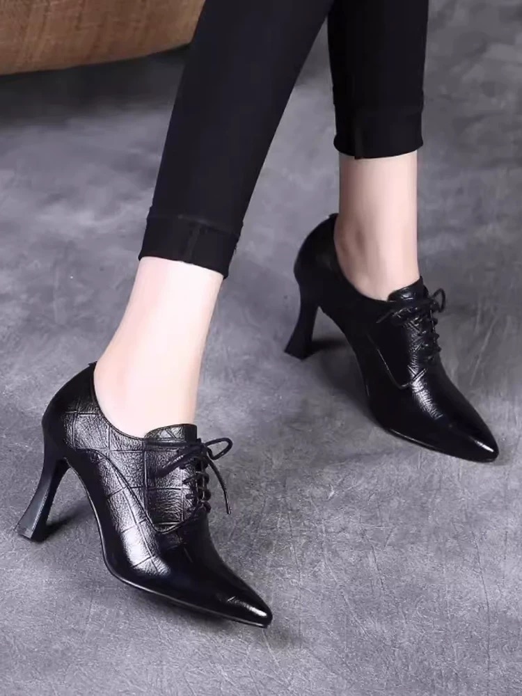 尖头细跟高跟鞋女2025新款秋冬短靴子上班族轻便洋气高级绝美软皮