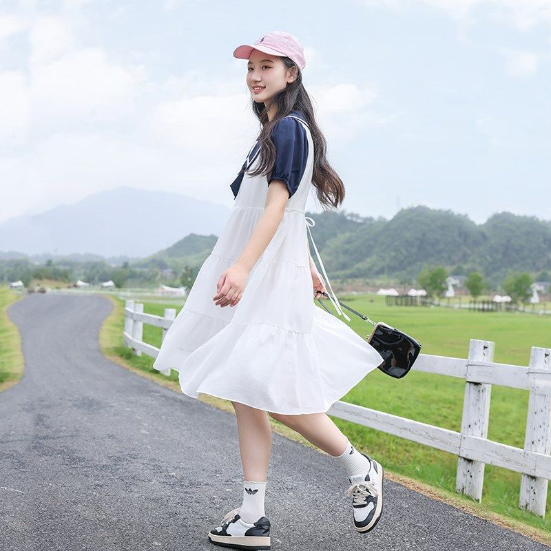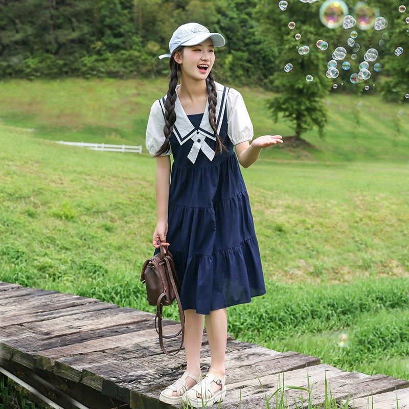 女大童连衣裙夏季2024新款洋气时髦15岁初中学生夏装薄款白色裙子