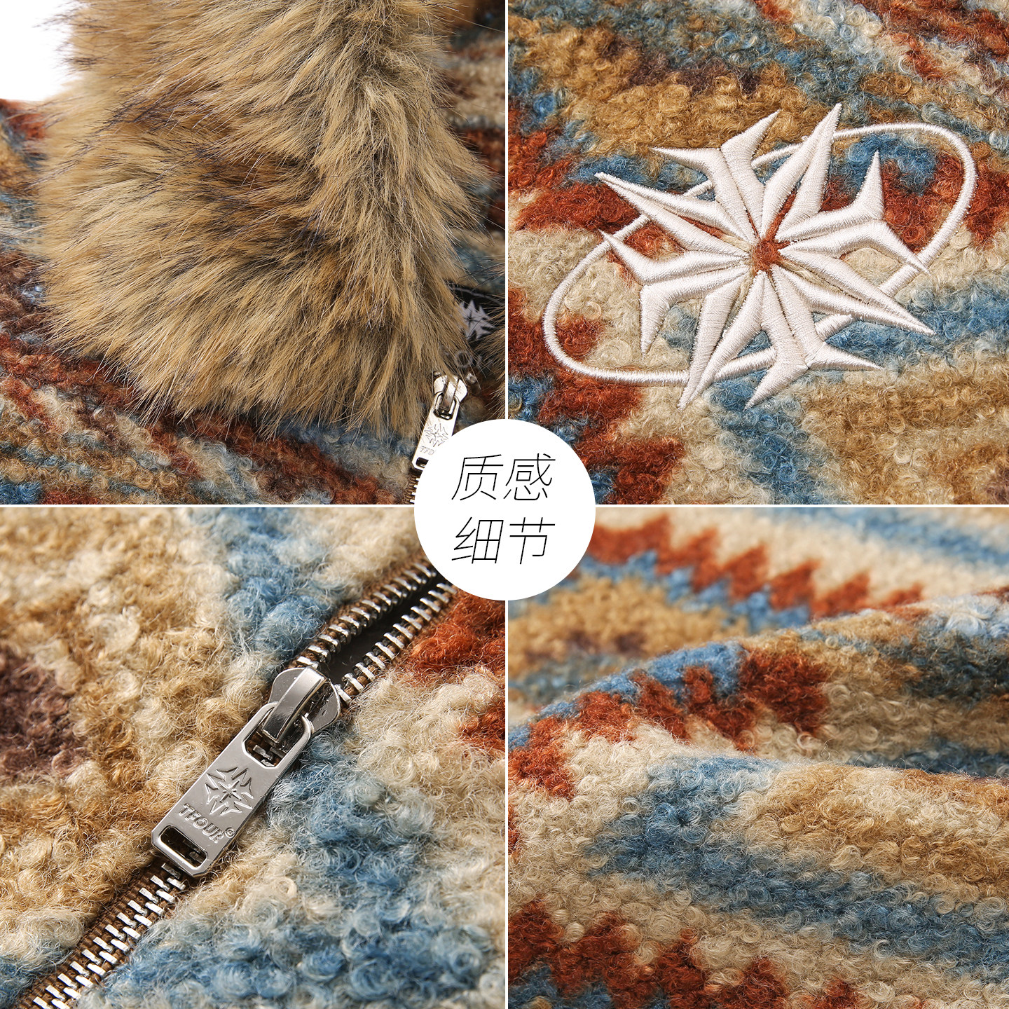 tfour复古费尔岛慵懒风棉衣外套