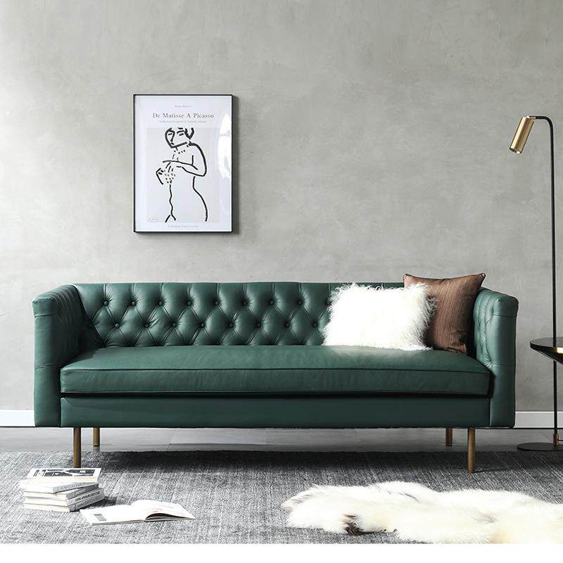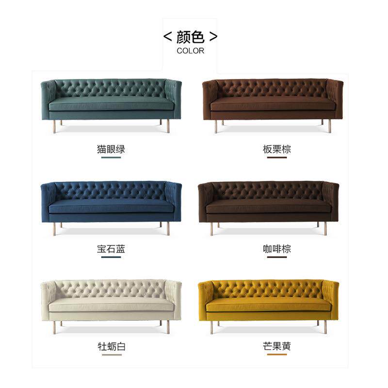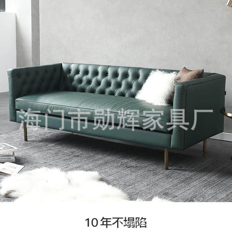 现代简约轻奢皮沙发小户型墨色厅美ts-89795式绿皮艺拉扣客沙发