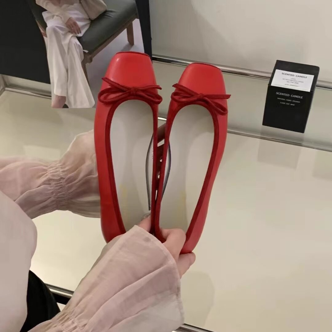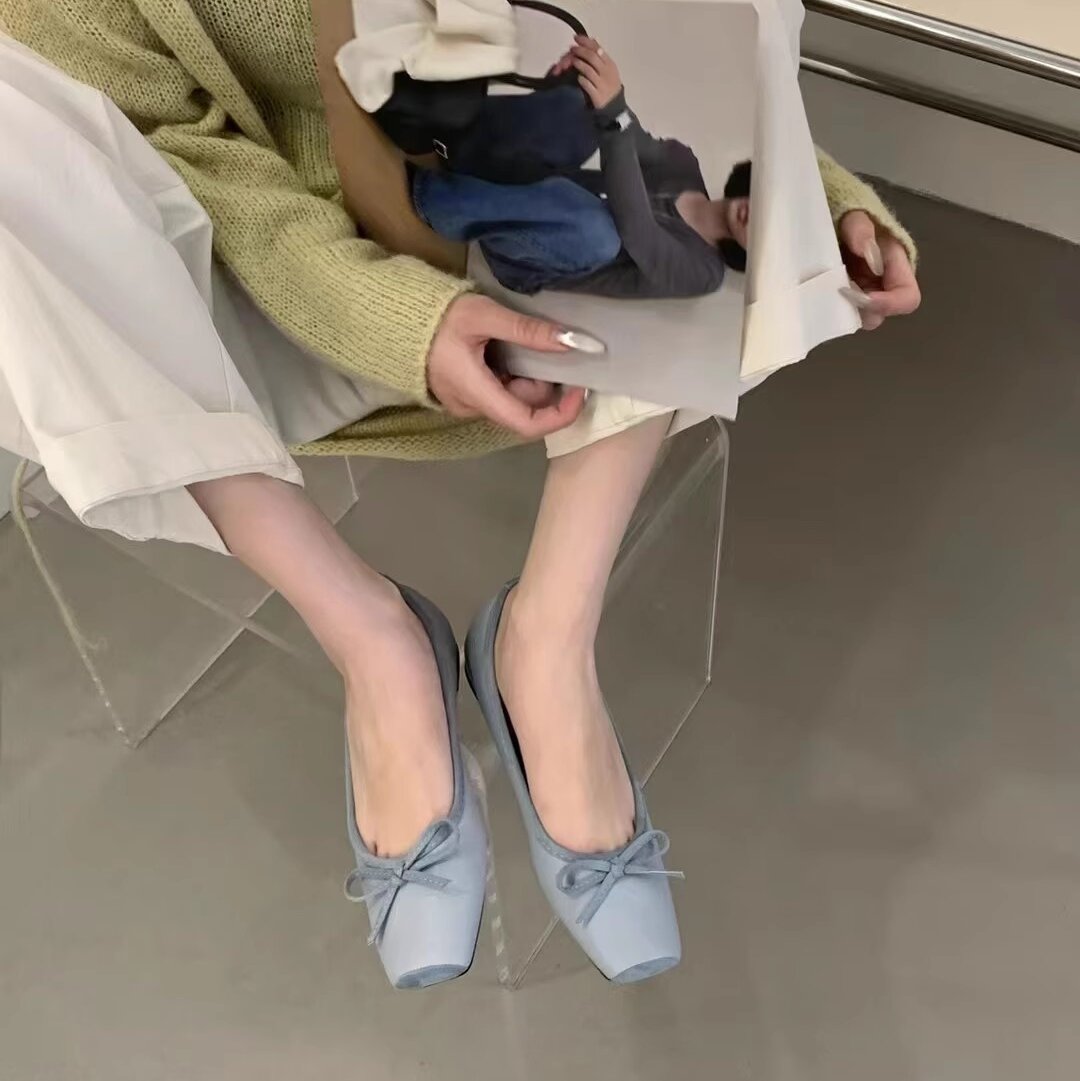 Jomeiforsan韩系芭蕾舞蝴蝶结晚晚风平底浅口新款增高单鞋方头女