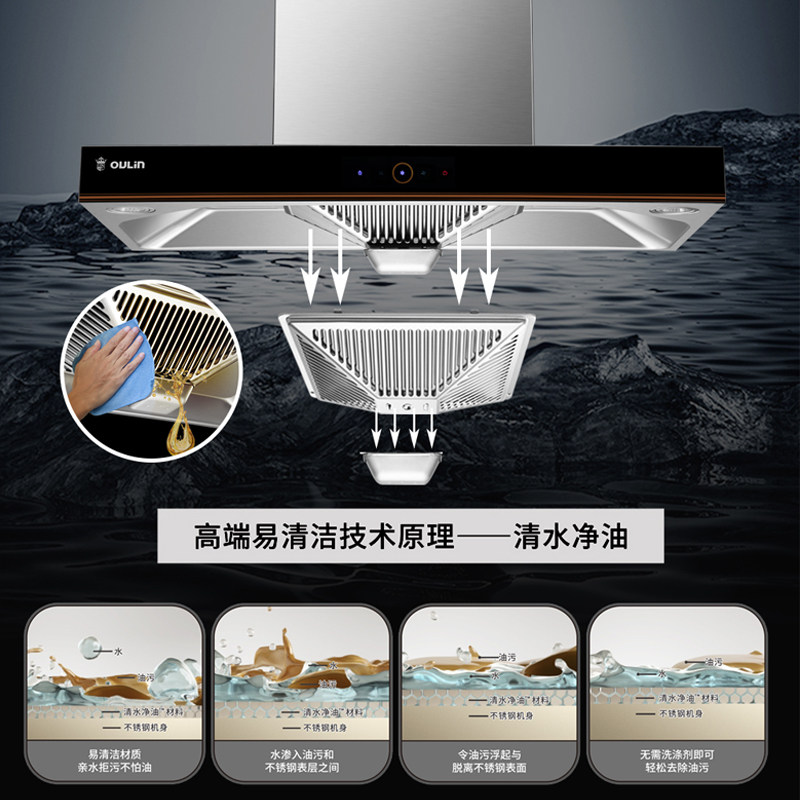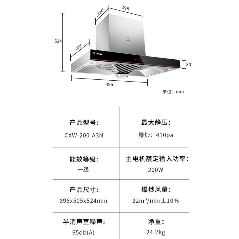 欧琳油烟机燃气灶套餐顶吸家用烟灶厨房组合不怕油设计A3NE3001B