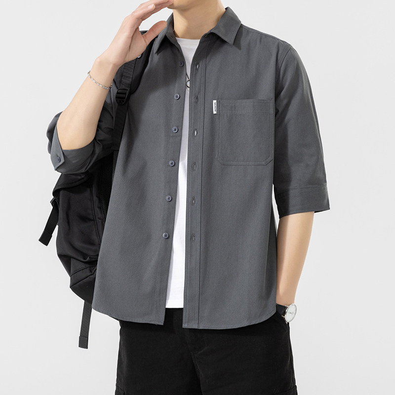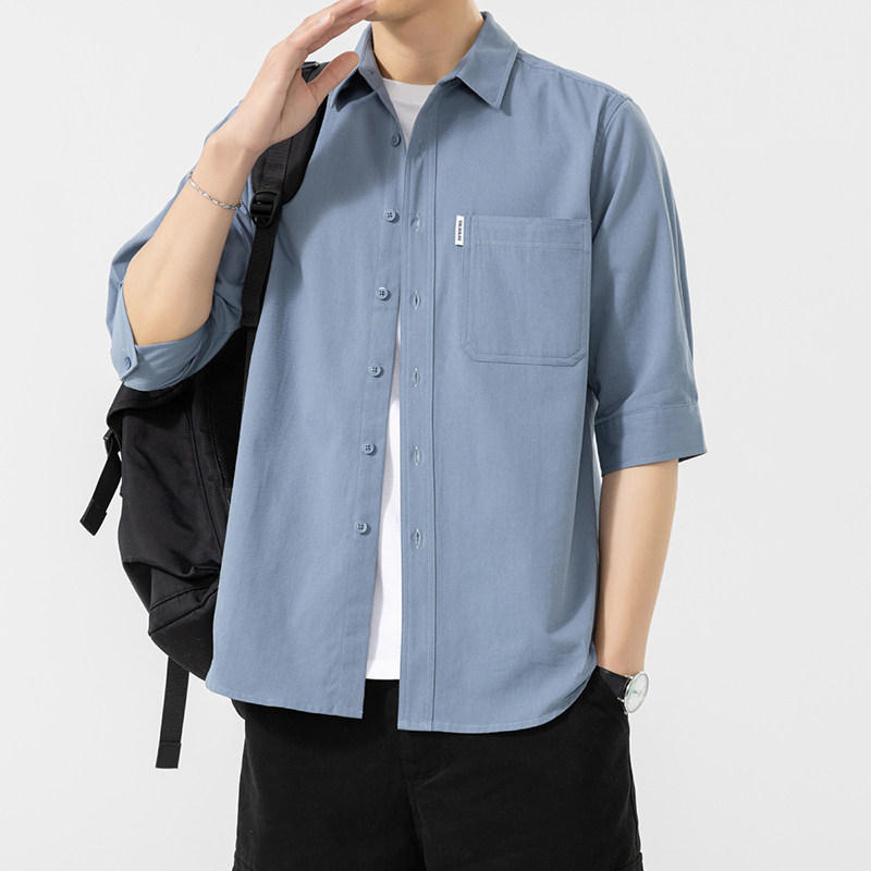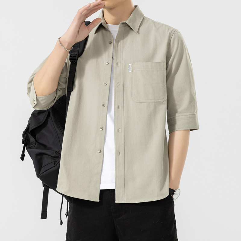 男士港风日系纯棉七分袖衬衫